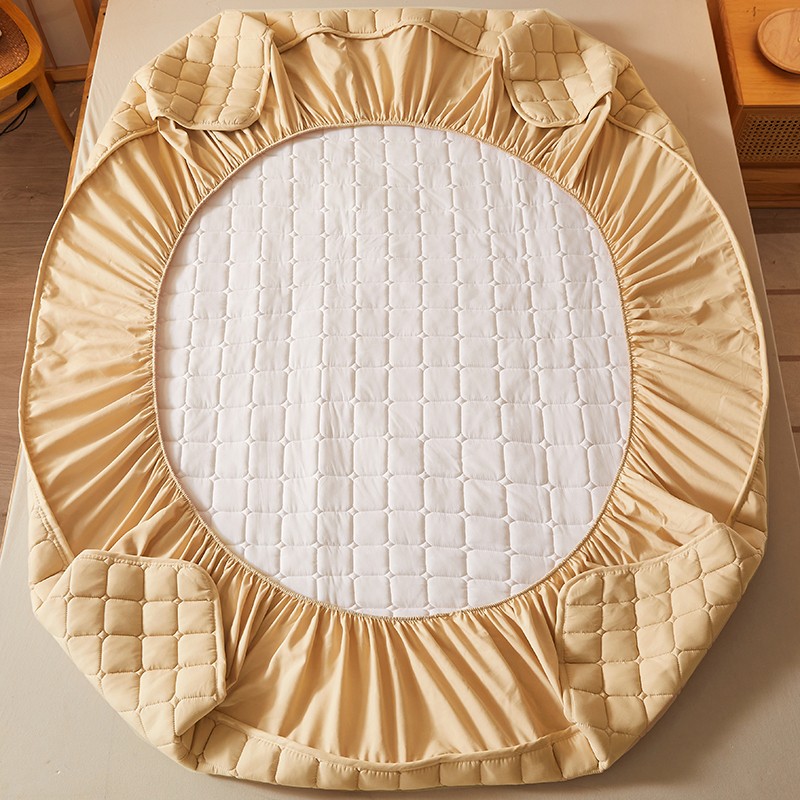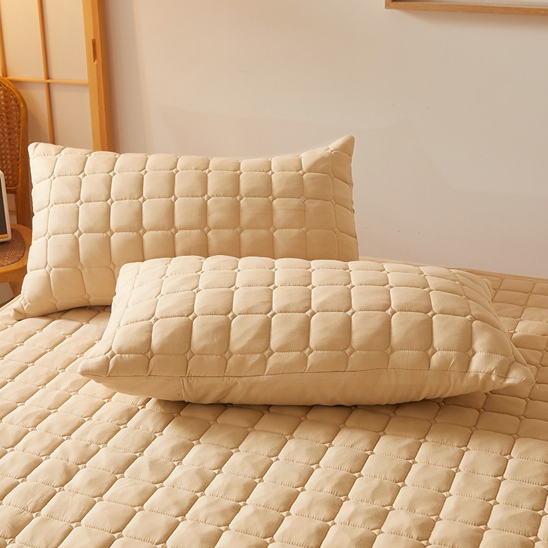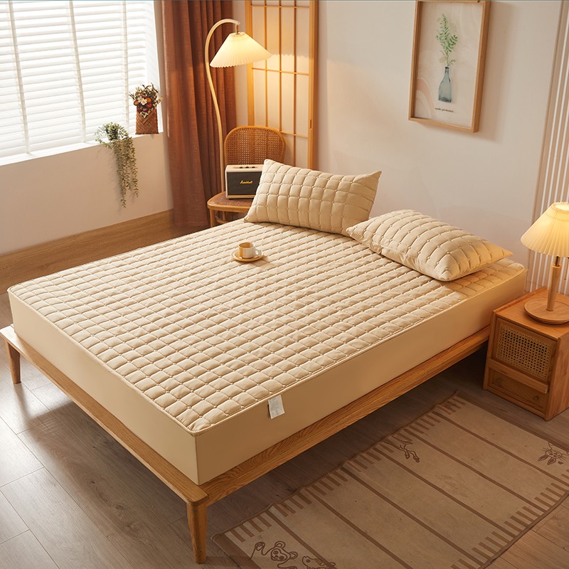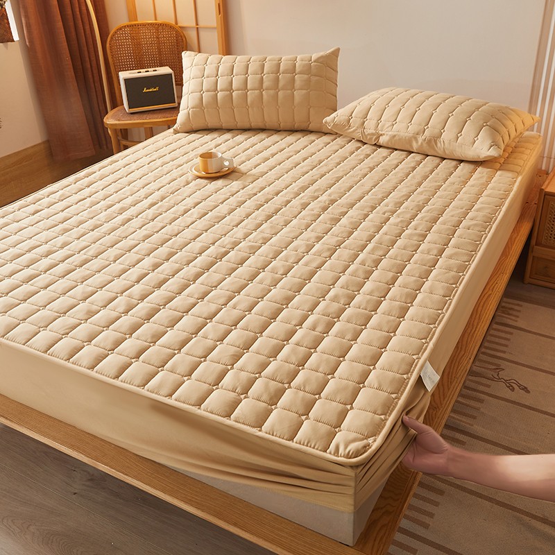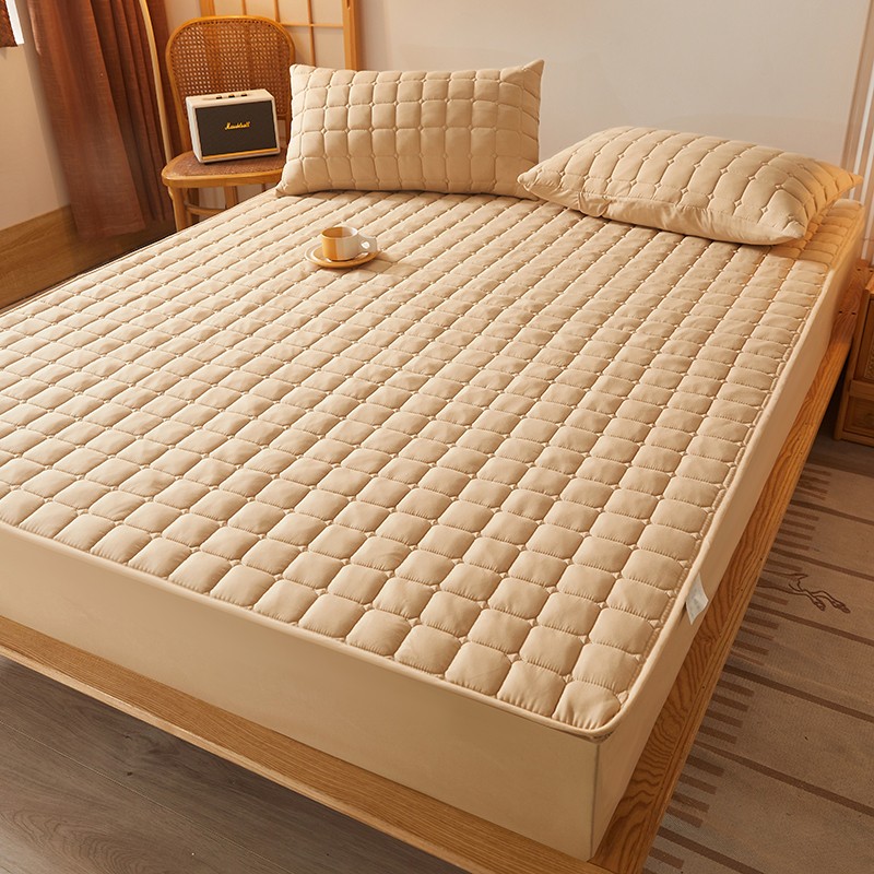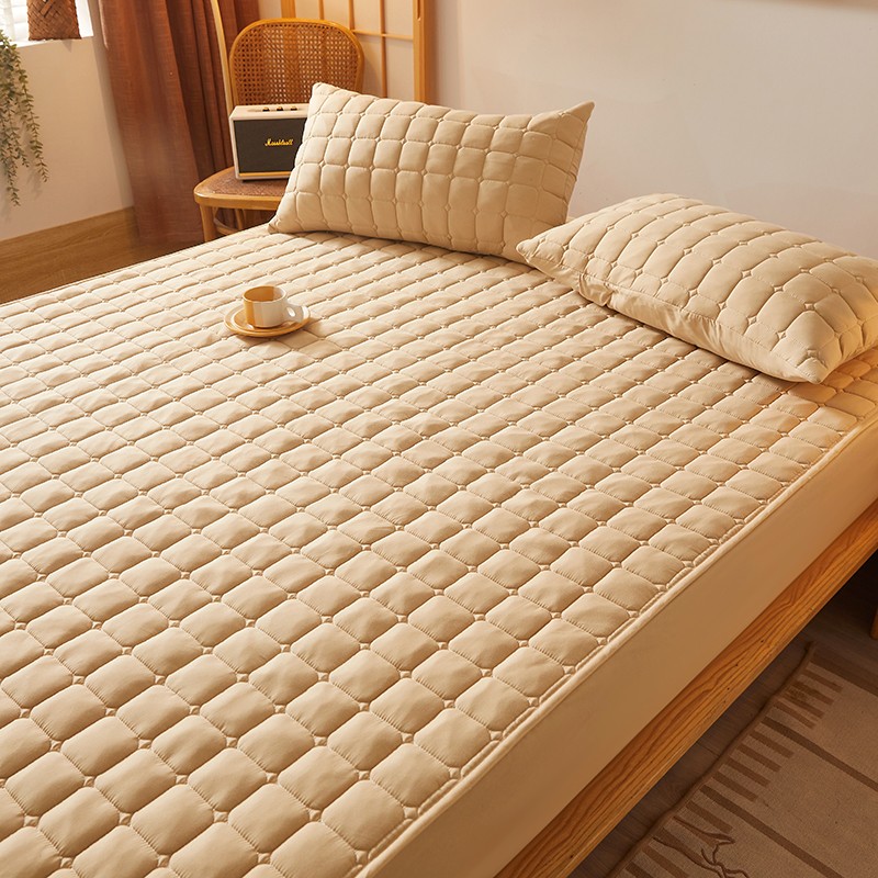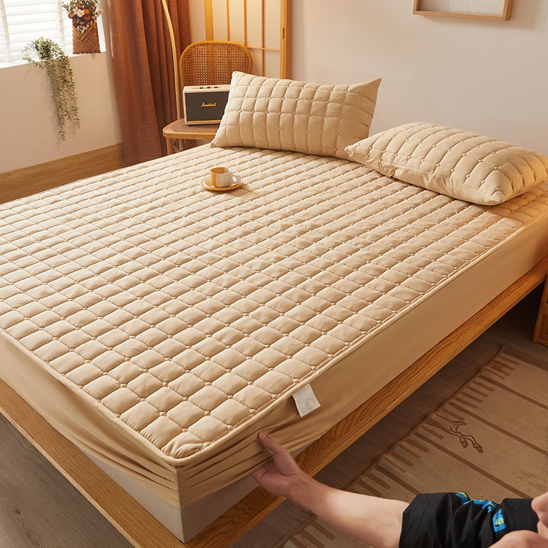 商品名称:乐逸2023新款亲肤夹棉防水床笠 小方格驼