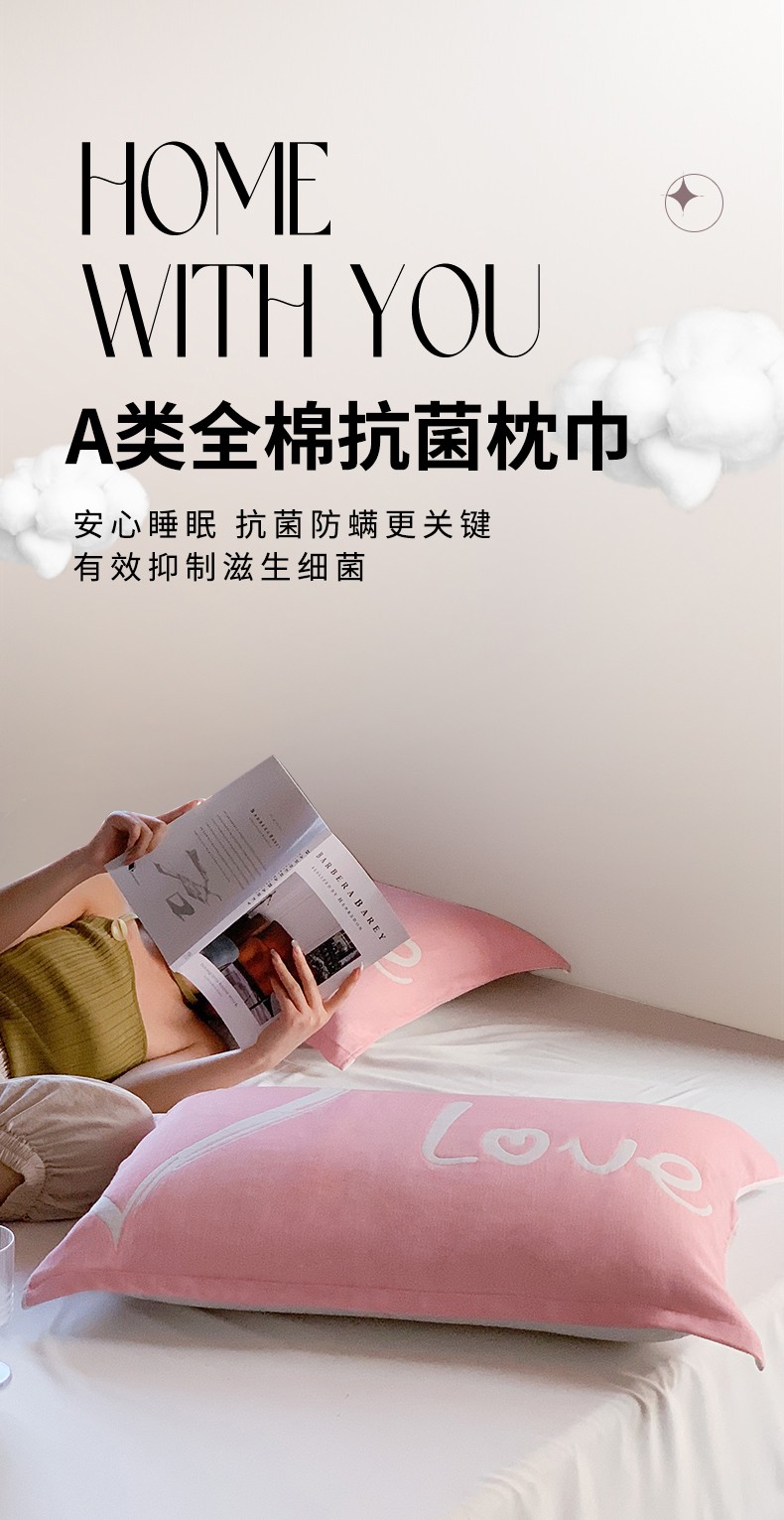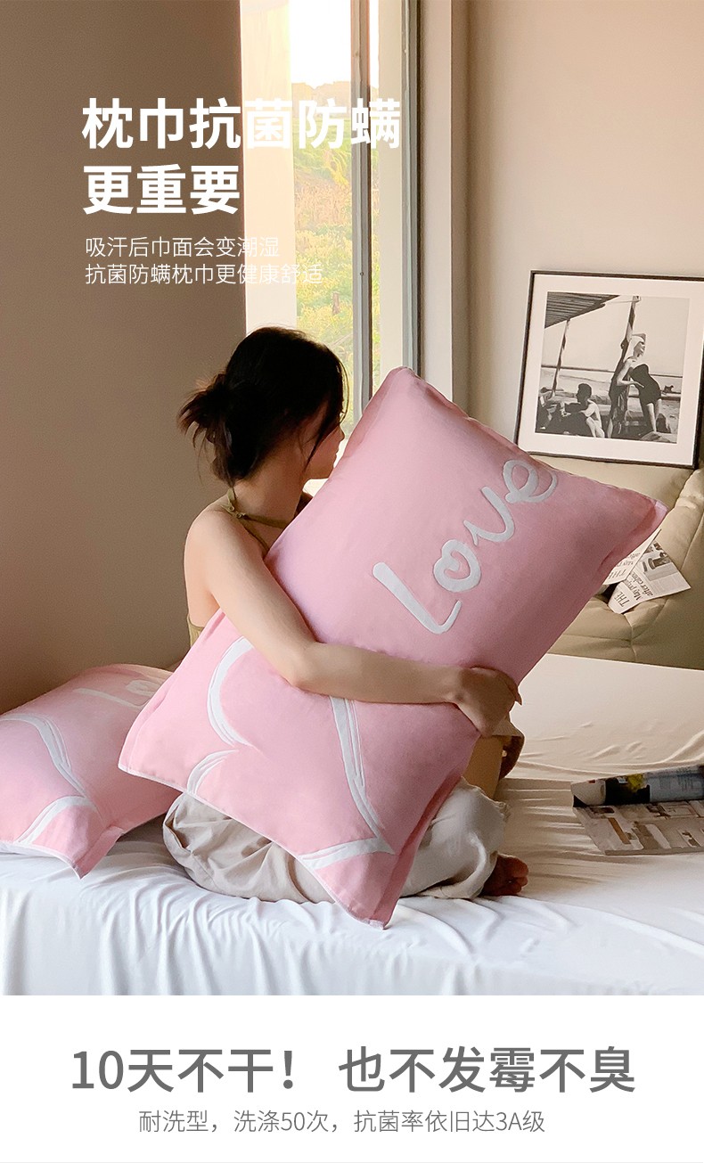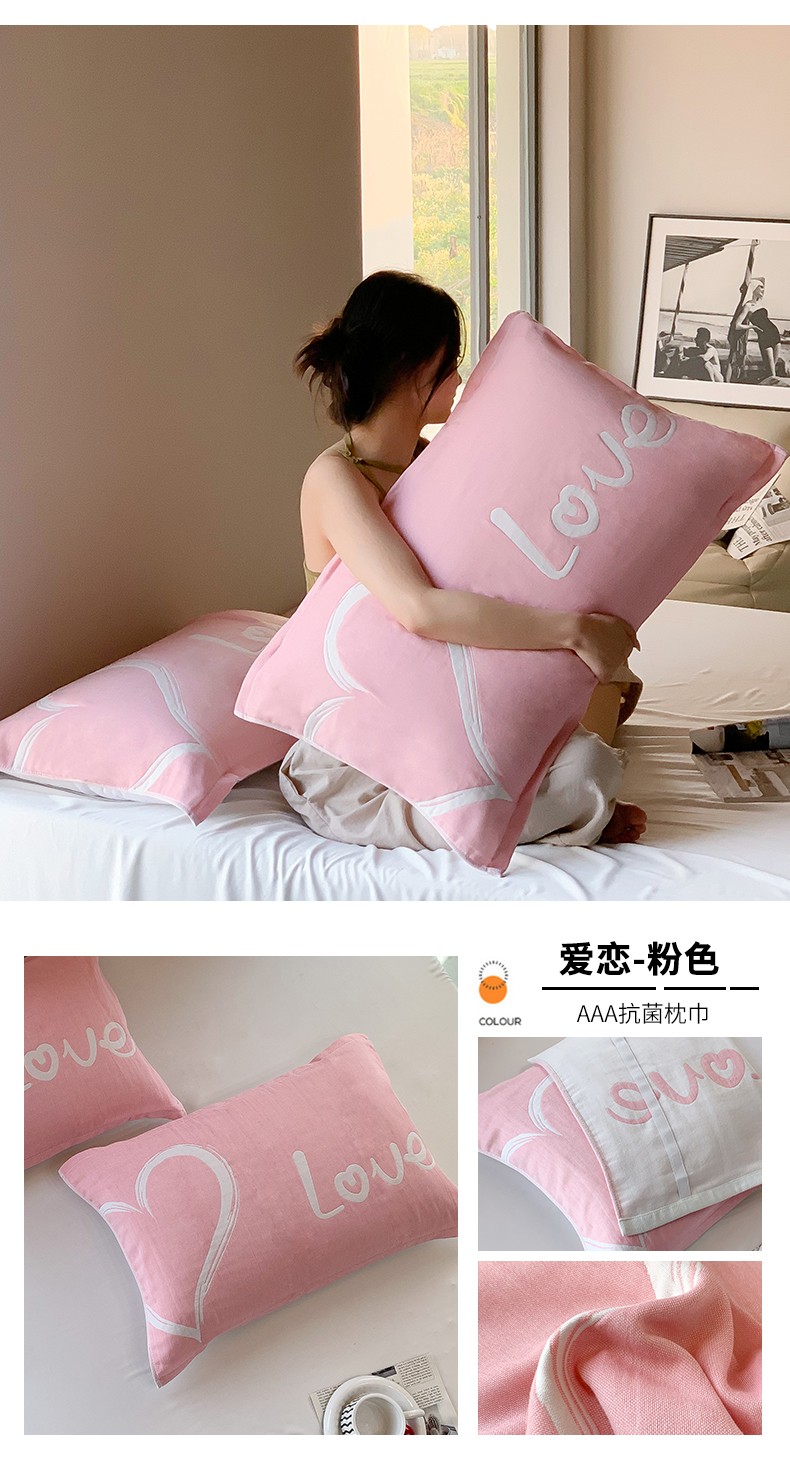 商品名称:爱港 A类防螨抗菌全棉纯棉防滑纱布枕头巾 爱恋-粉A类防螨抗菌绑带款