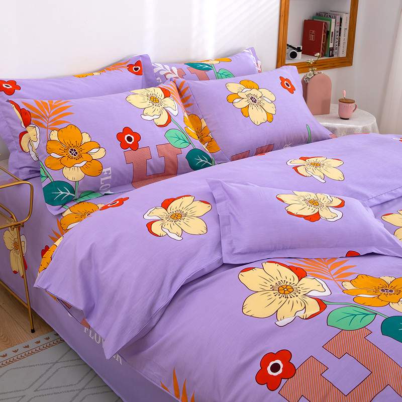 雨萝家纺 2022新款纯棉四件套全棉学生宿舍三件套 快乐心情