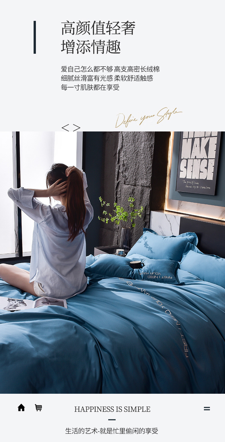 商品名称:米奈2024新款100支长绒棉四件套《莱恩》 宾利蓝