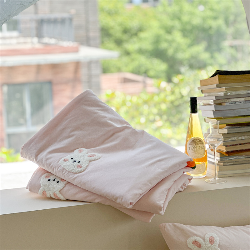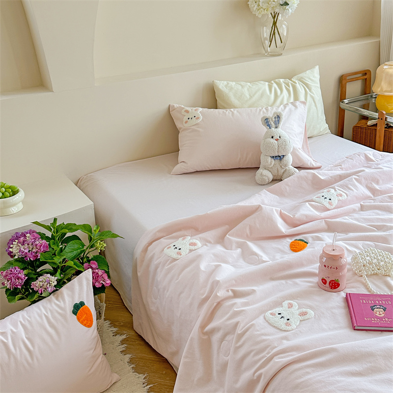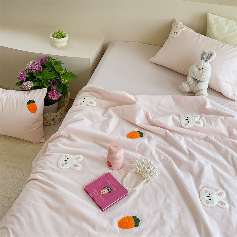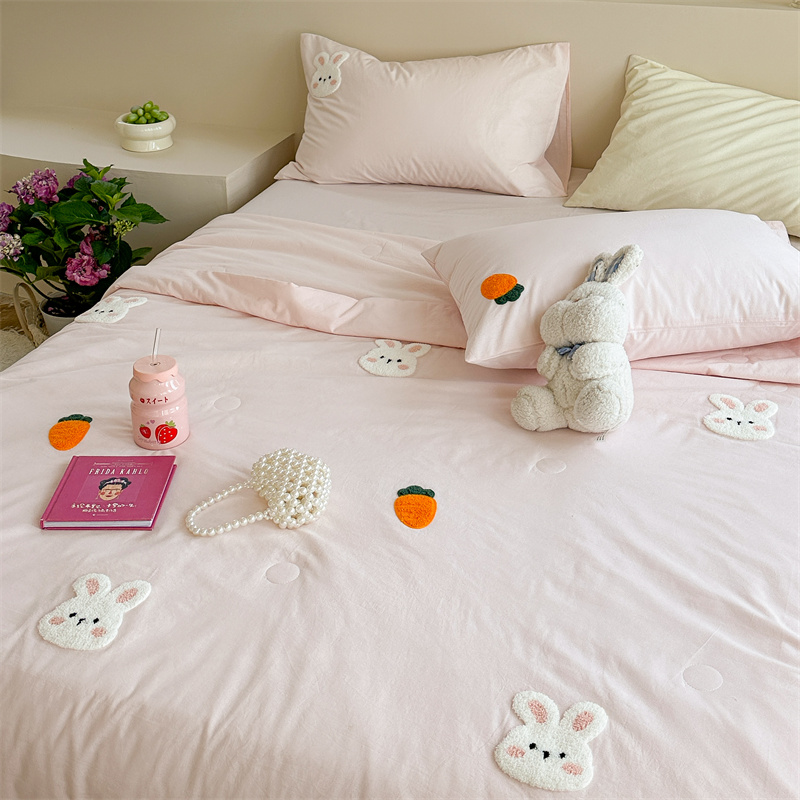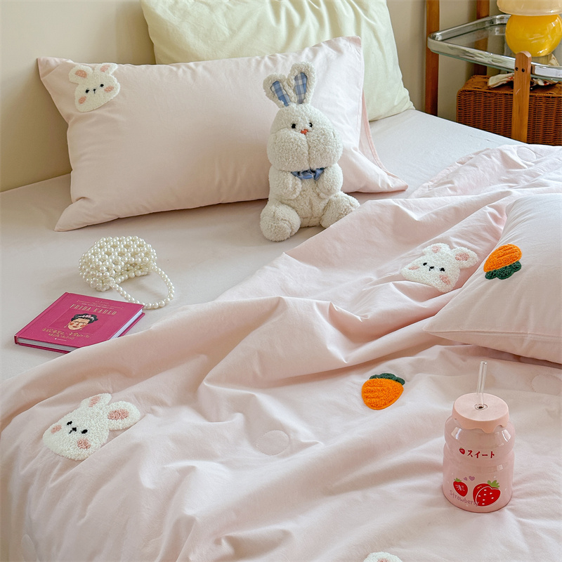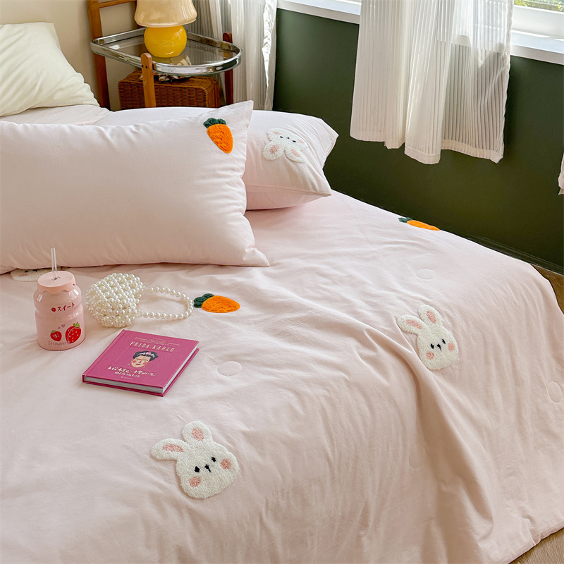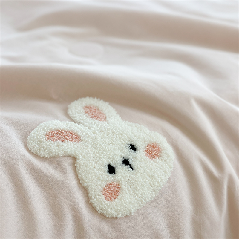 柚子YOUTH 2023新款马卡龙全棉水洗棉毛巾绣夏被四件套 小白兔