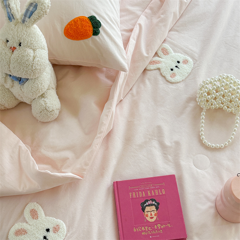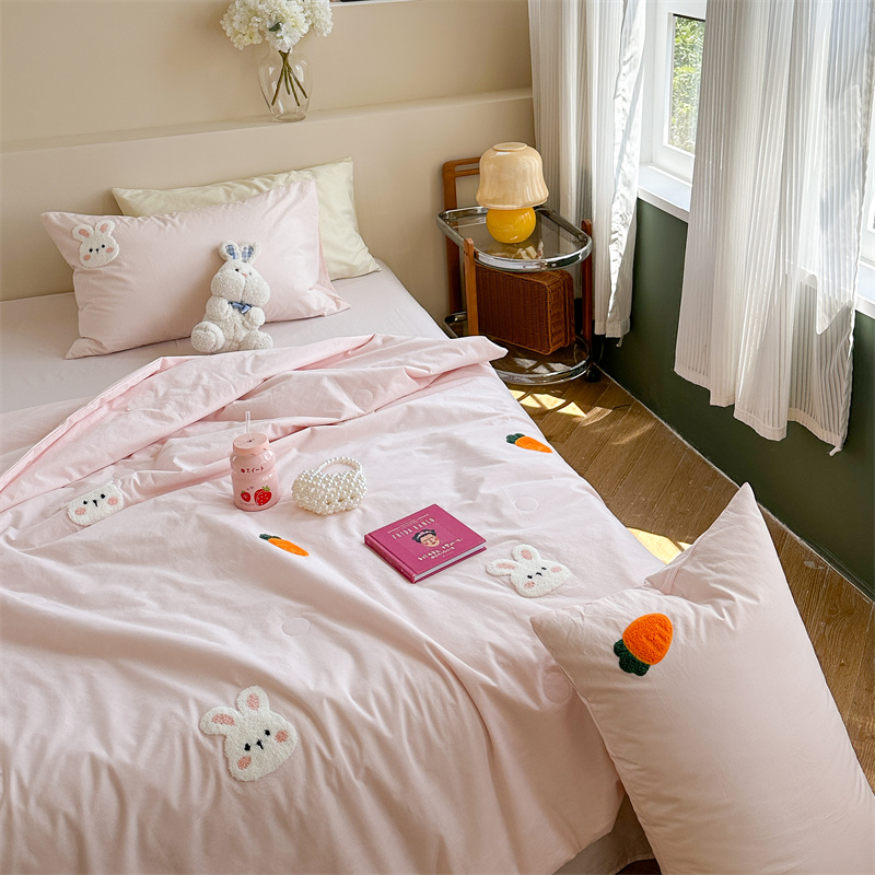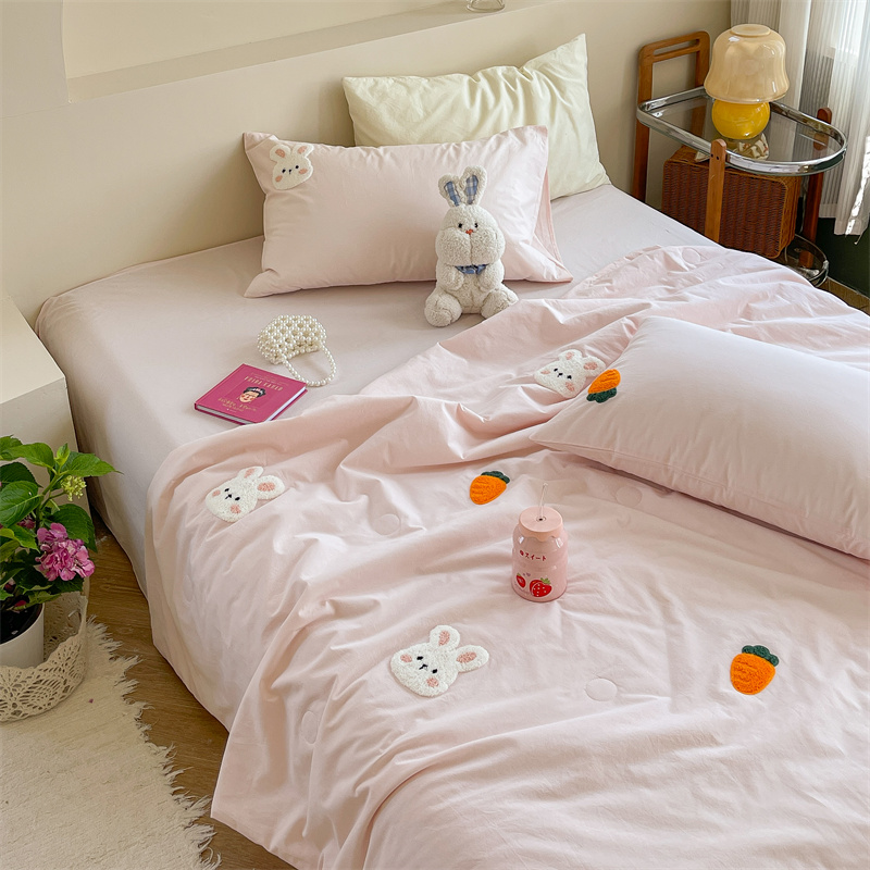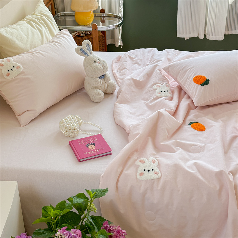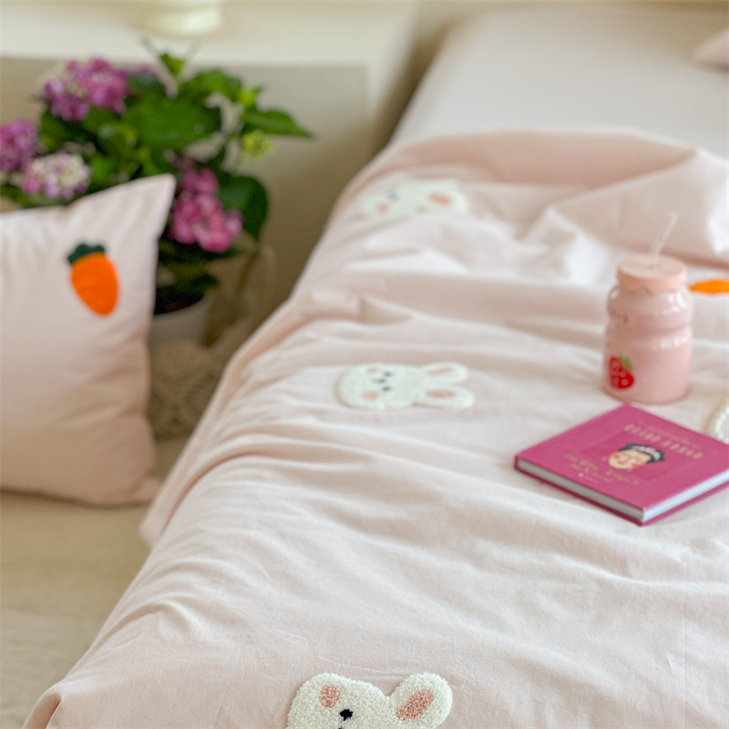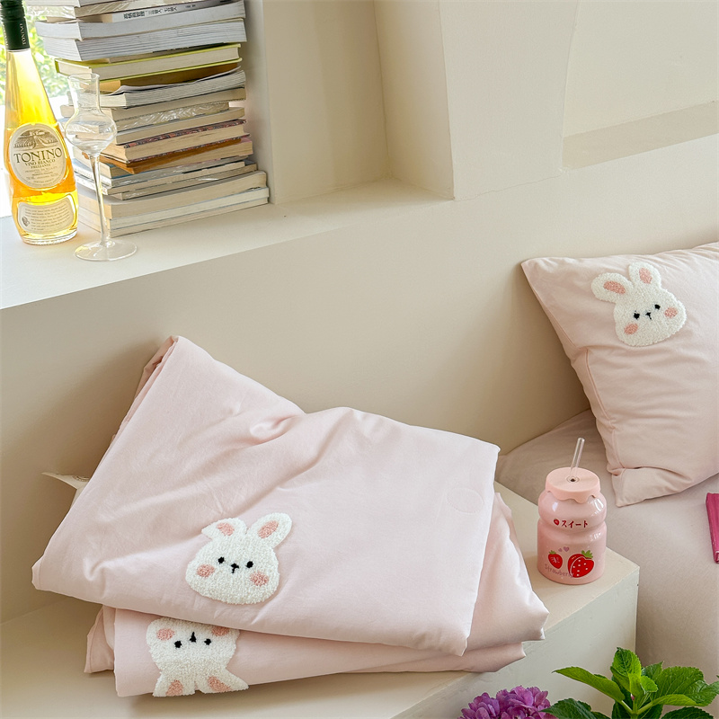 柚子YOUTH 2023新款马卡龙全棉水洗棉毛巾绣夏被四件套 小白兔
