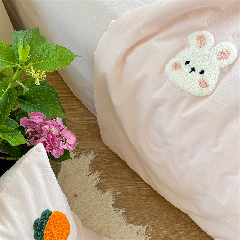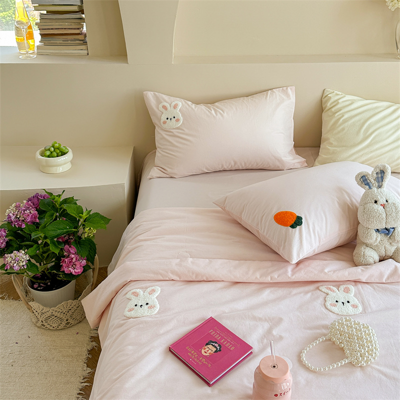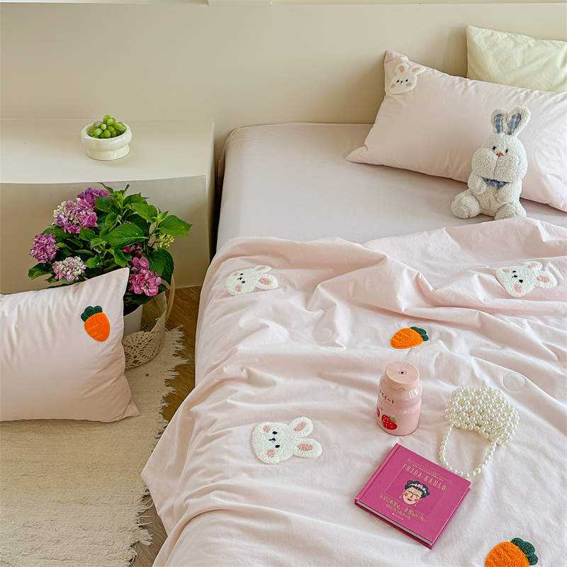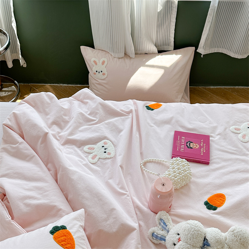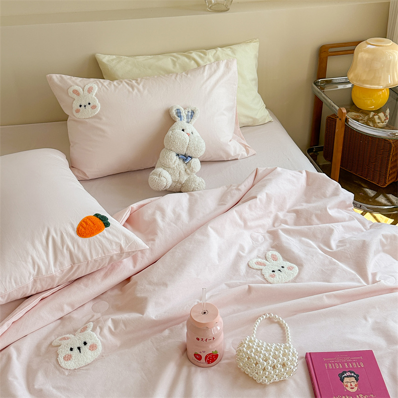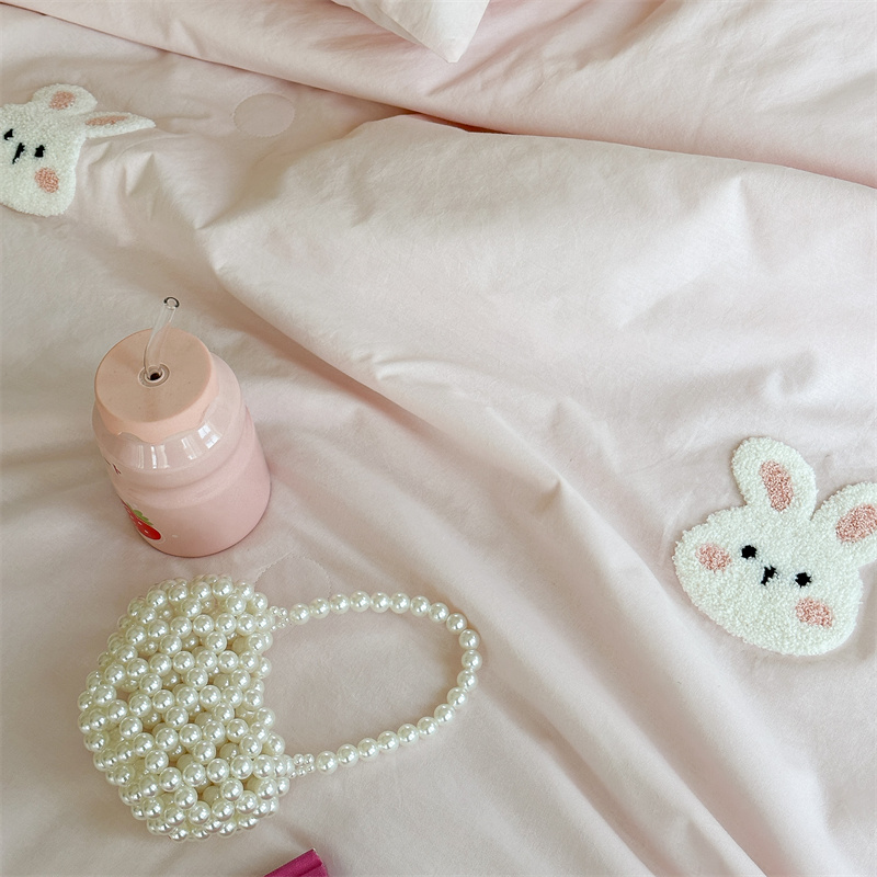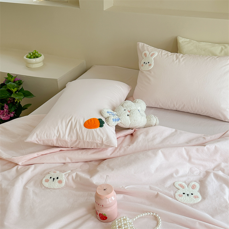 柚子YOUTH 2023新款马卡龙全棉水洗棉毛巾绣夏被四件套 小白兔