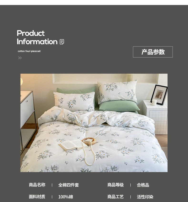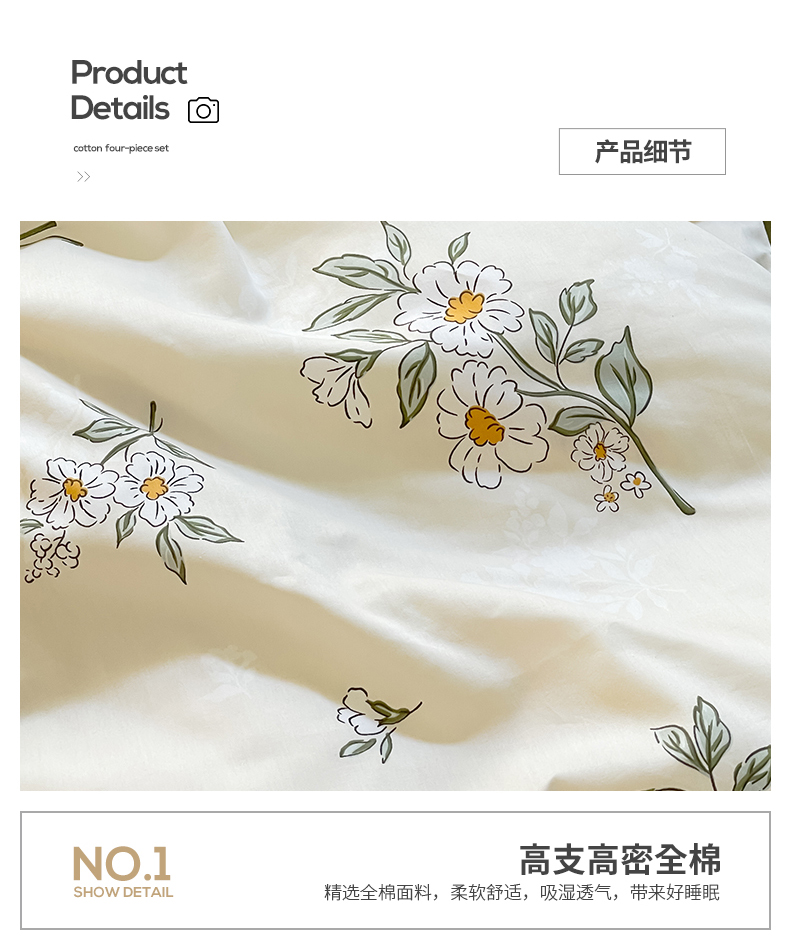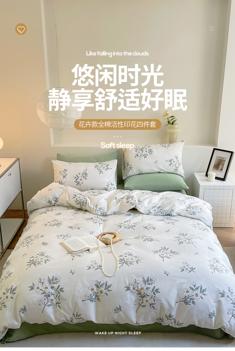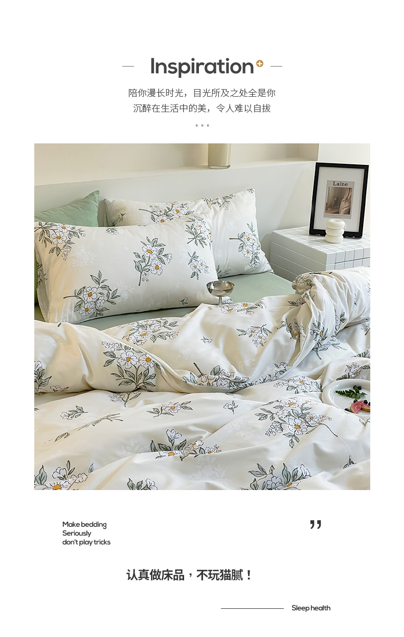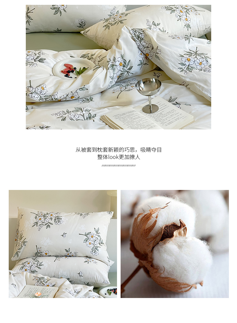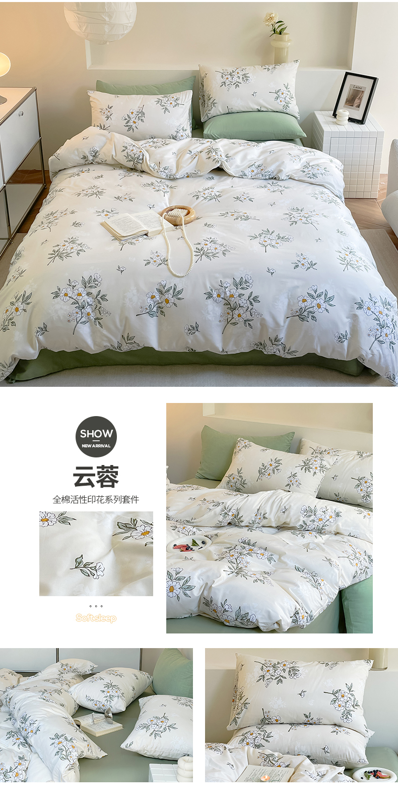 当前位置: 91家纺网 > 商品网购 > 床品套件 > 四件套 > 全棉普通四件套 > 窝米 2023夏季新品13370全棉四件花卉风系列 云蓉