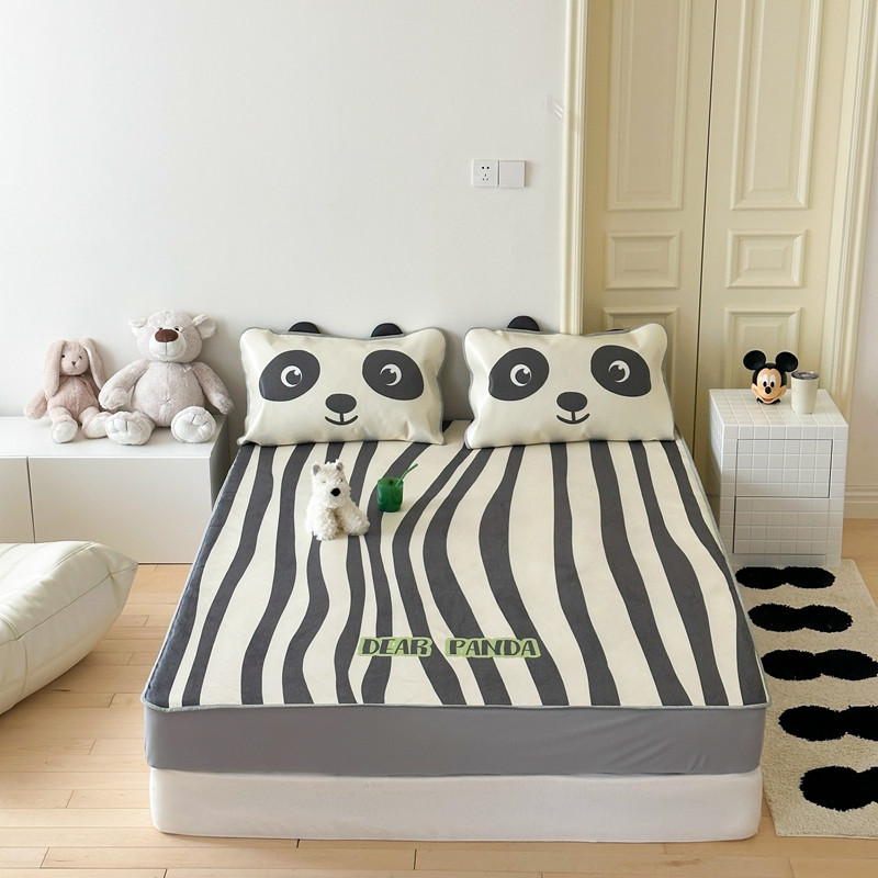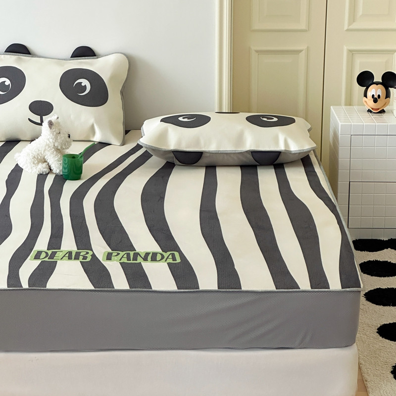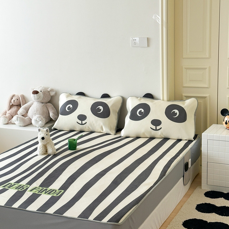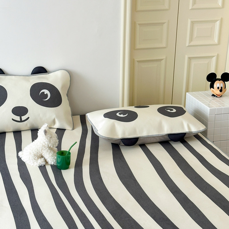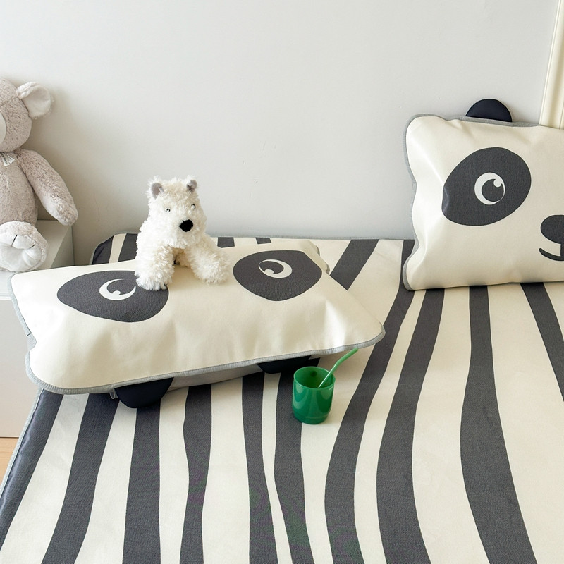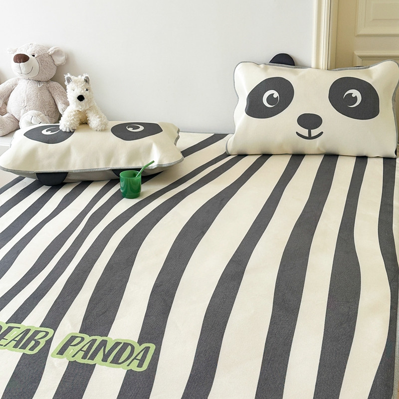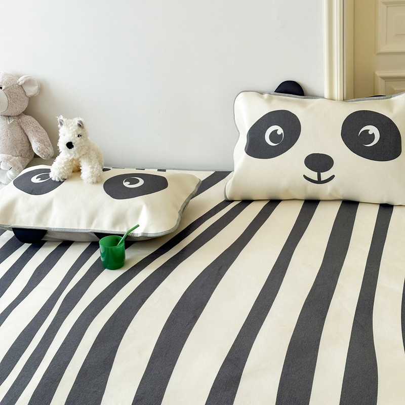 商品名称:觅糖 2023新款卡通异形印花冰藤凉席床笠款 线条熊猫