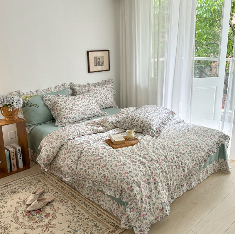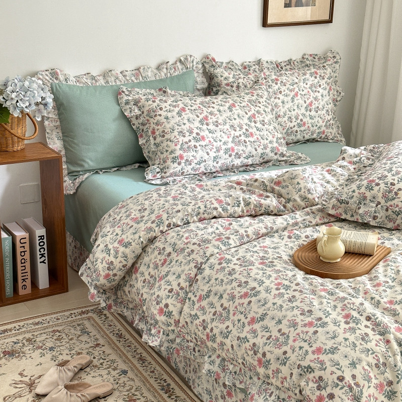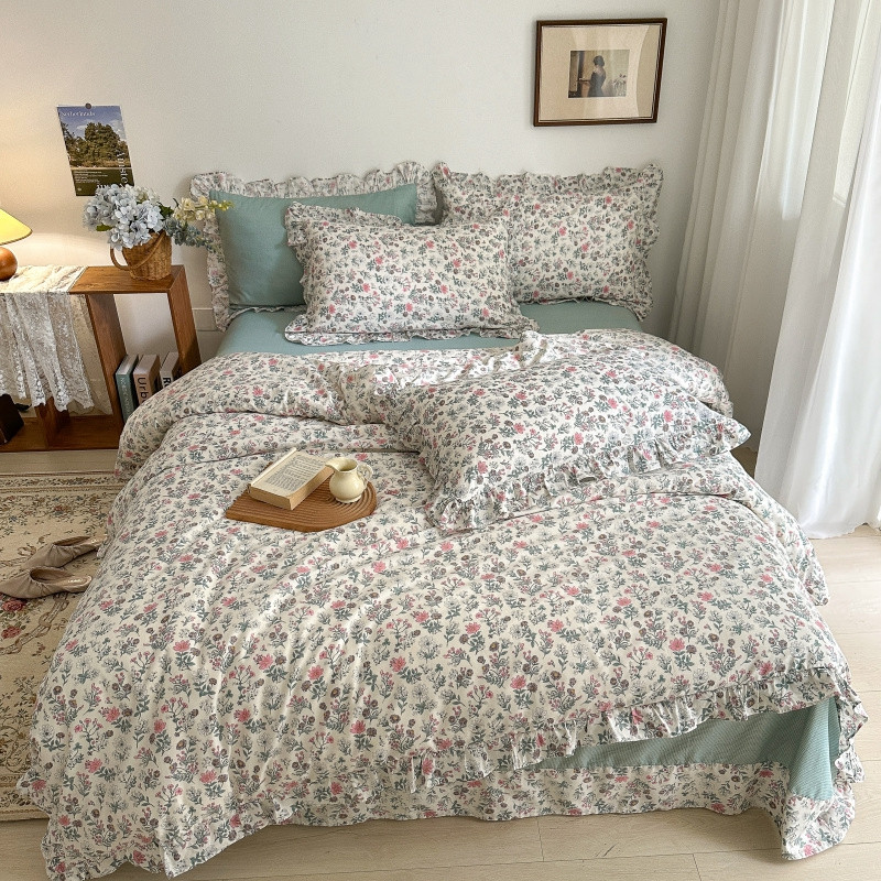 棉生活 2025新款洛丽塔花边款全棉四件套 花田妙语