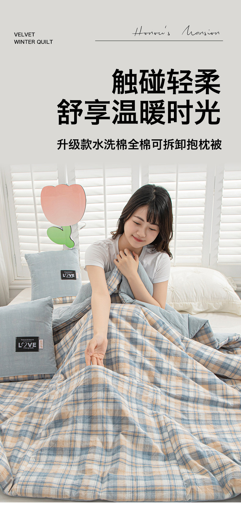 (总)翰轩家居 2025新款A类全棉色织水洗棉懒人休闲被披肩抱枕三合一被子,巴克曼,布兰卡,格瑞塔,格森,红颜格,爵士,洛克,摩根,情书,威廉,维多娜