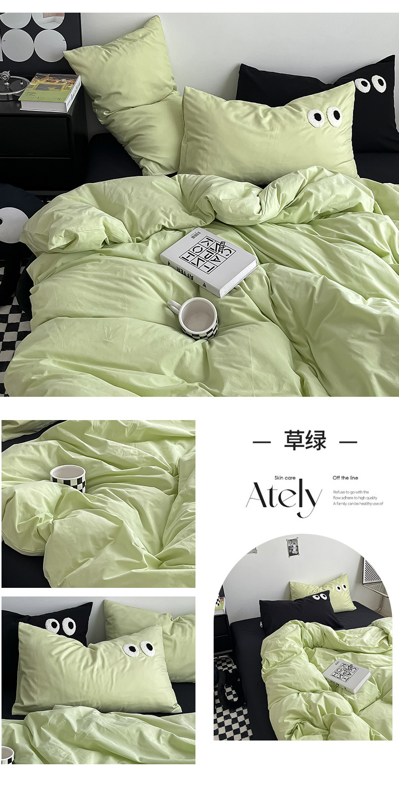 当前位置: 91家纺网 > 商品网购 > 床品套件 > 四件套 > 水洗棉四件套 > 盼季家纺 2023新款纯色水洗棉大眼睛煤球四件套 大眼-绿灯侠