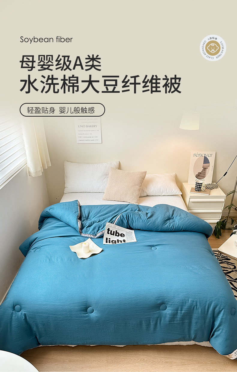 (总)森林人 2024新款A类水洗棉大豆纤维夏被四件套夏凉被空调被,薄荷绿,宾利蓝,豆沙,卡其,柠檬黄,绅士灰,优雅玉,珍珠白