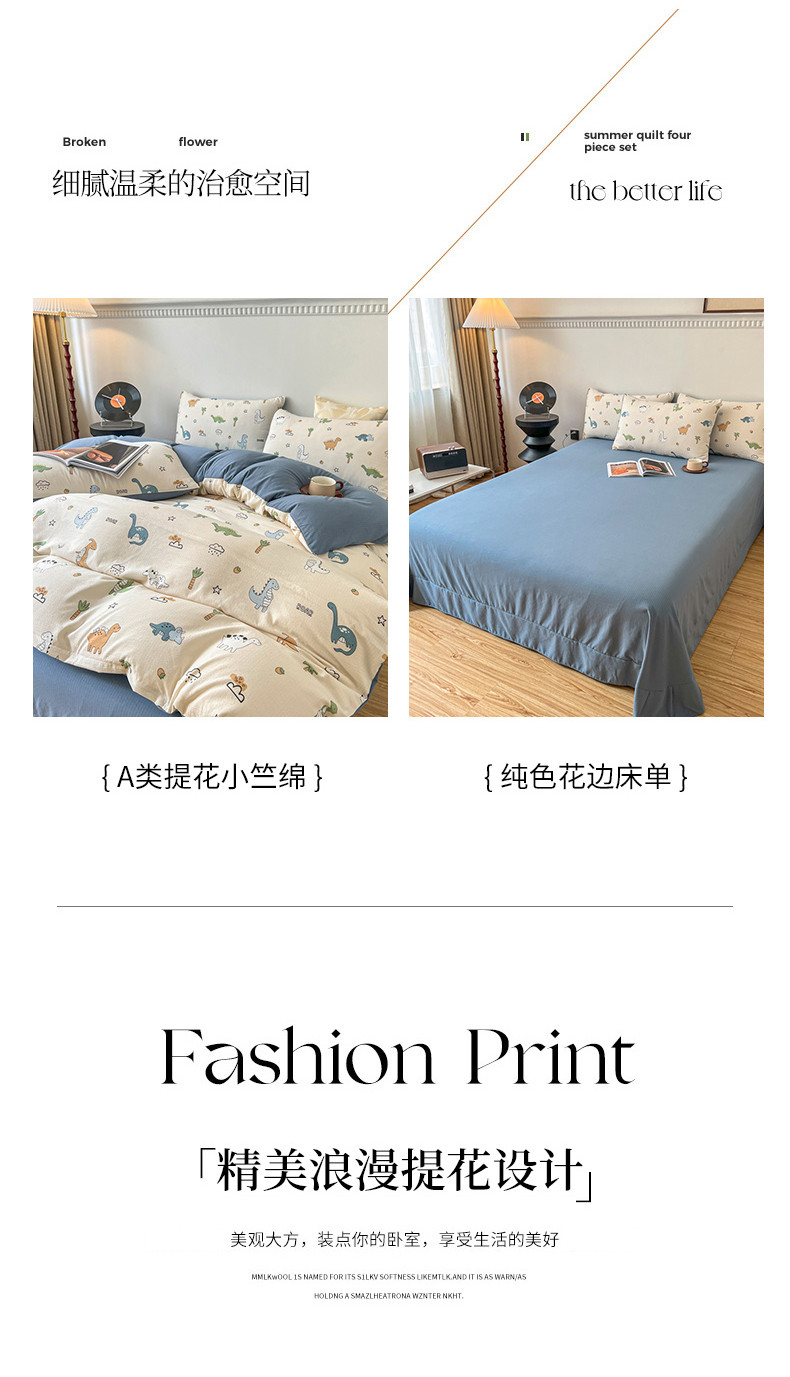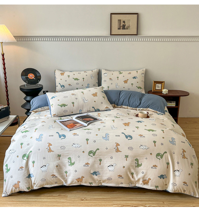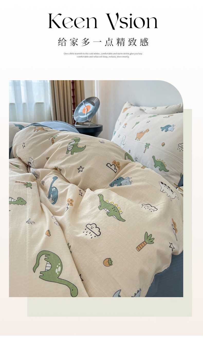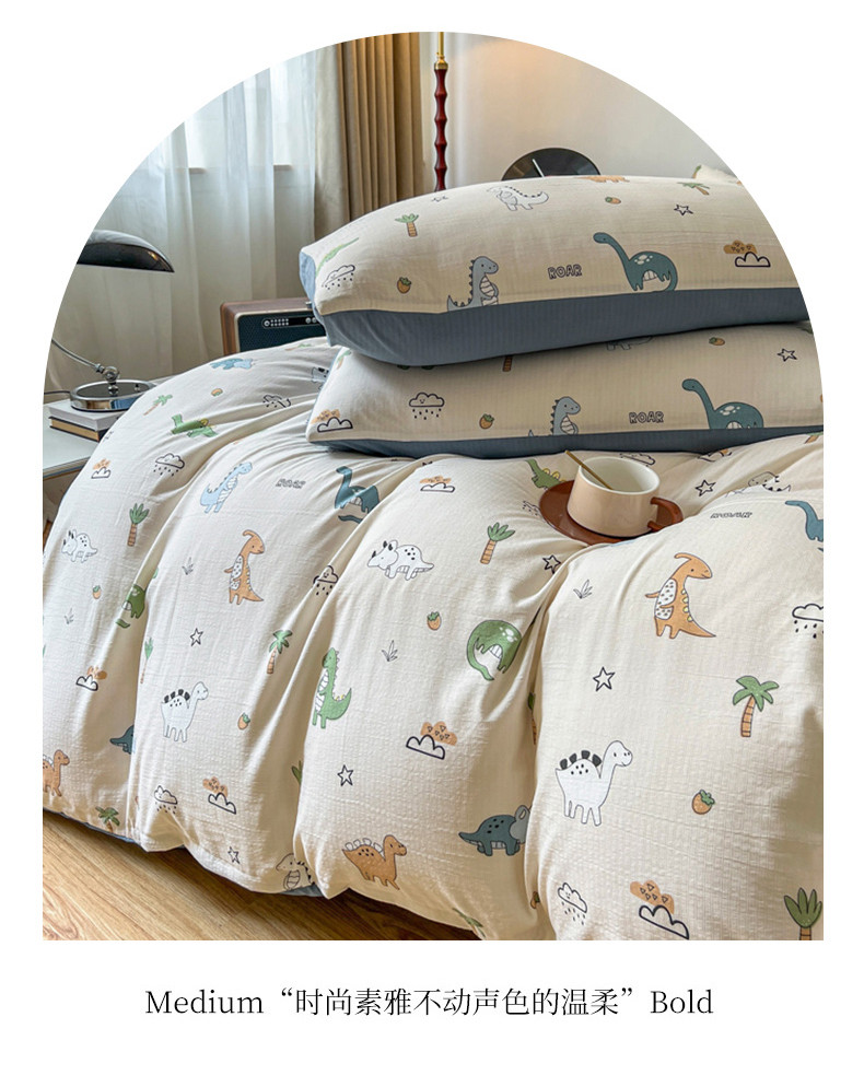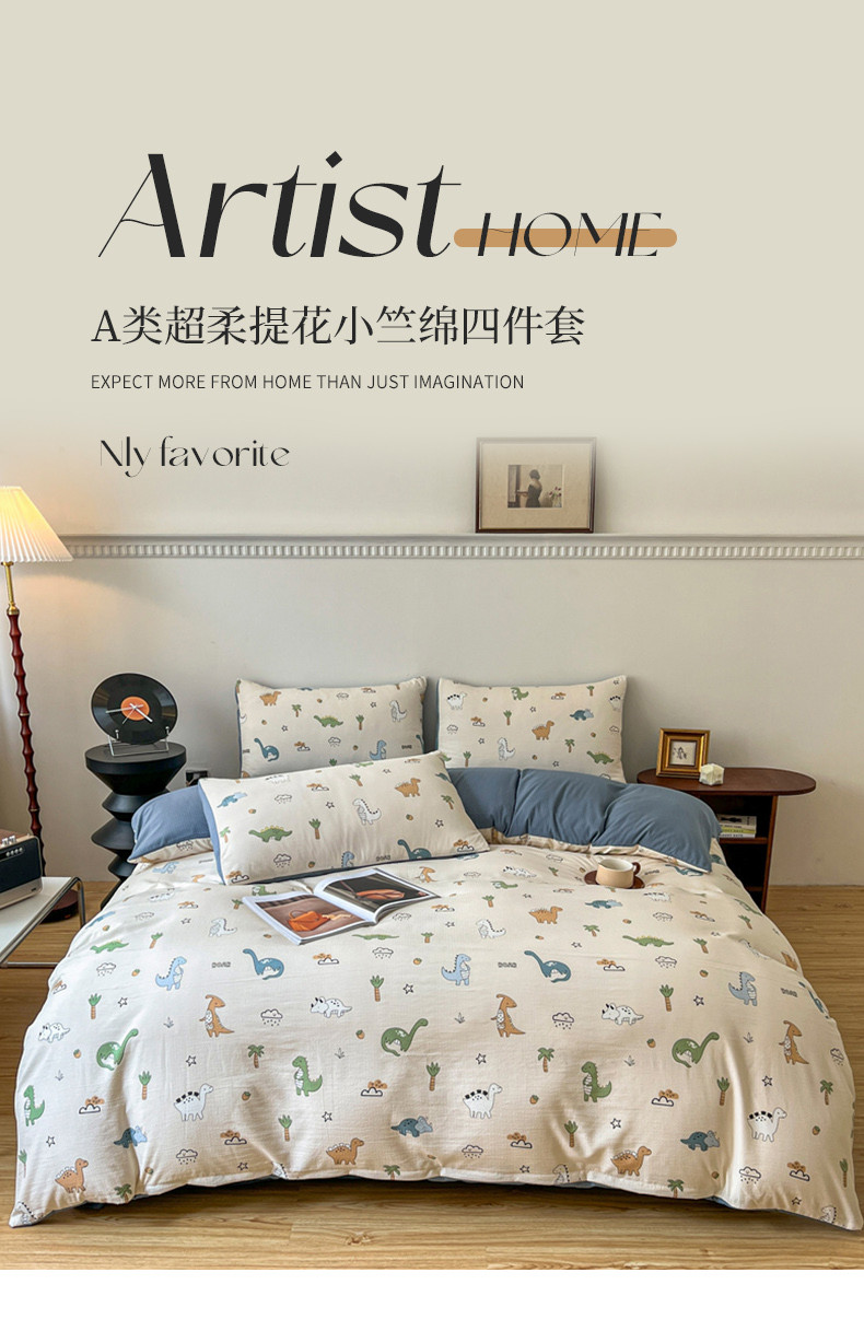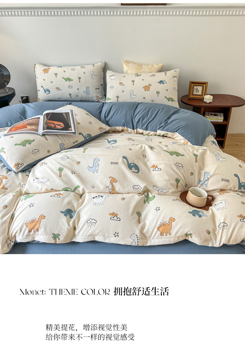 一比一 直播爆款超柔提花小竺棉法式复古亲肤水洗四件套 恐龙当家