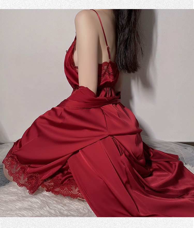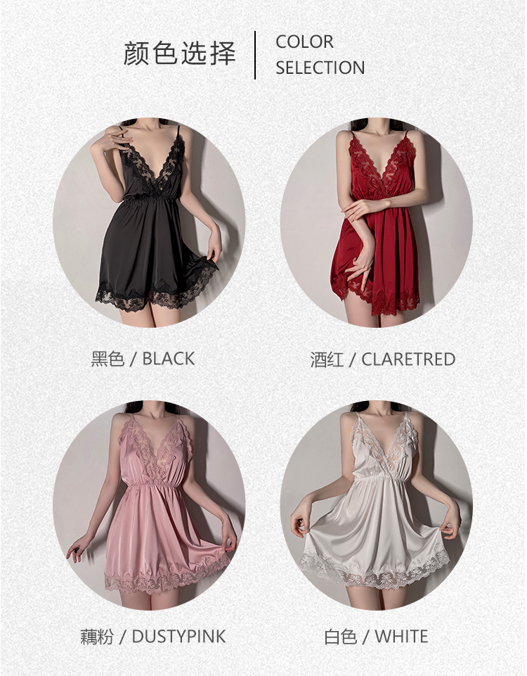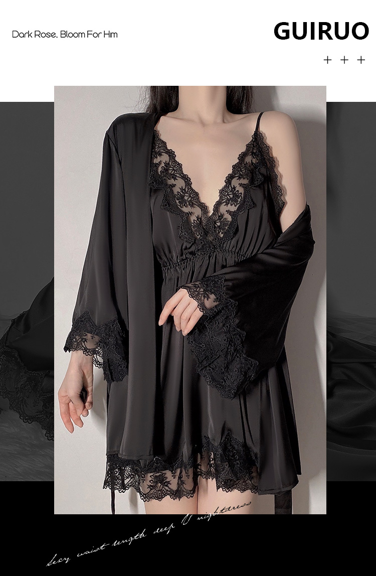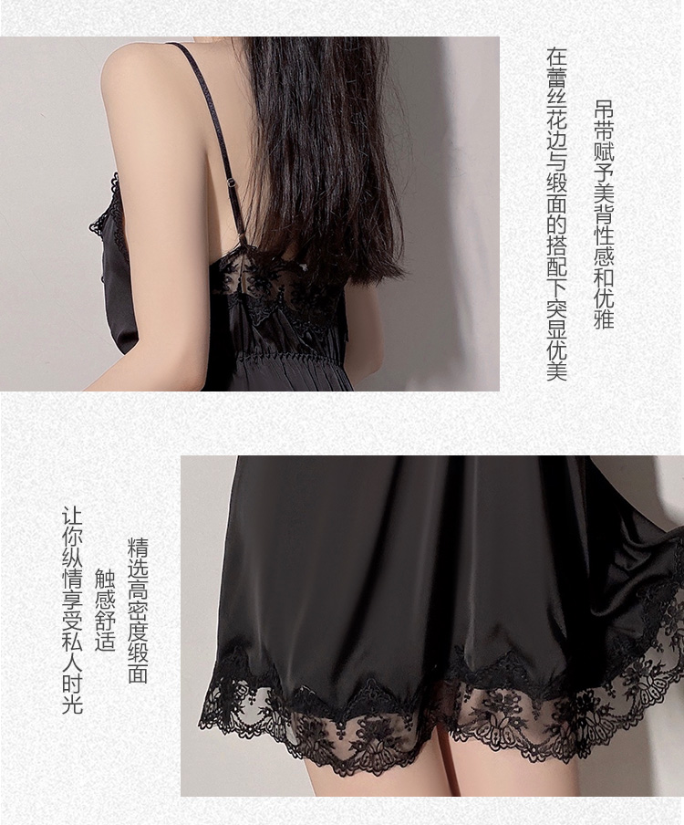 商品名称:洛兰沙 2023新款外贸冰丝蕾丝吊带和两件套 267龟龟黑色外