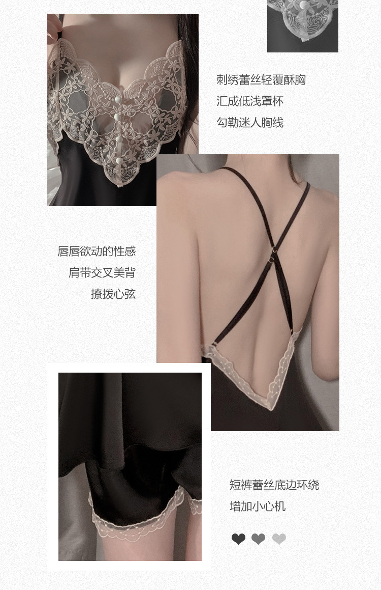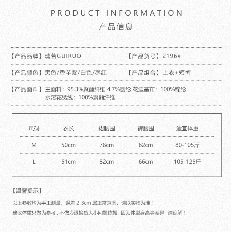 商品名称:洛兰沙 2023新款外贸冰丝蕾丝吊带和两件套-2196嘟嘟 枣红