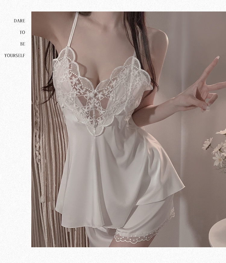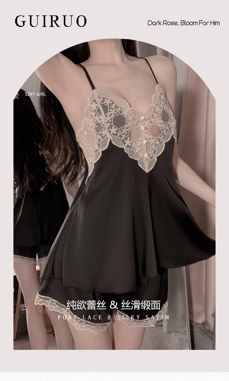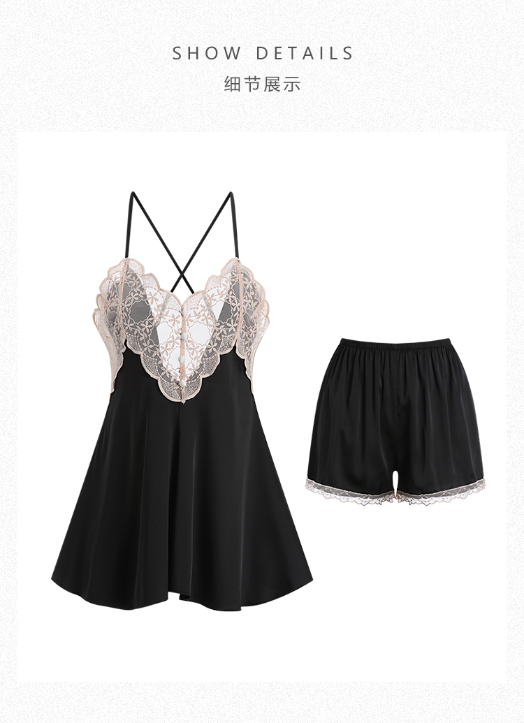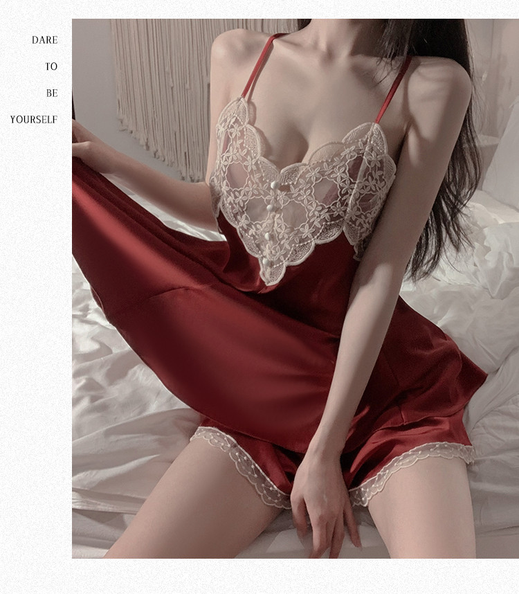 洛兰沙 2023新款外贸冰丝蕾丝吊带和两件套-2196嘟嘟 枣红