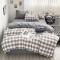 水洗棉色织格子无印风三件套纯色双拼磨毛被套四件套 幻影-灰
