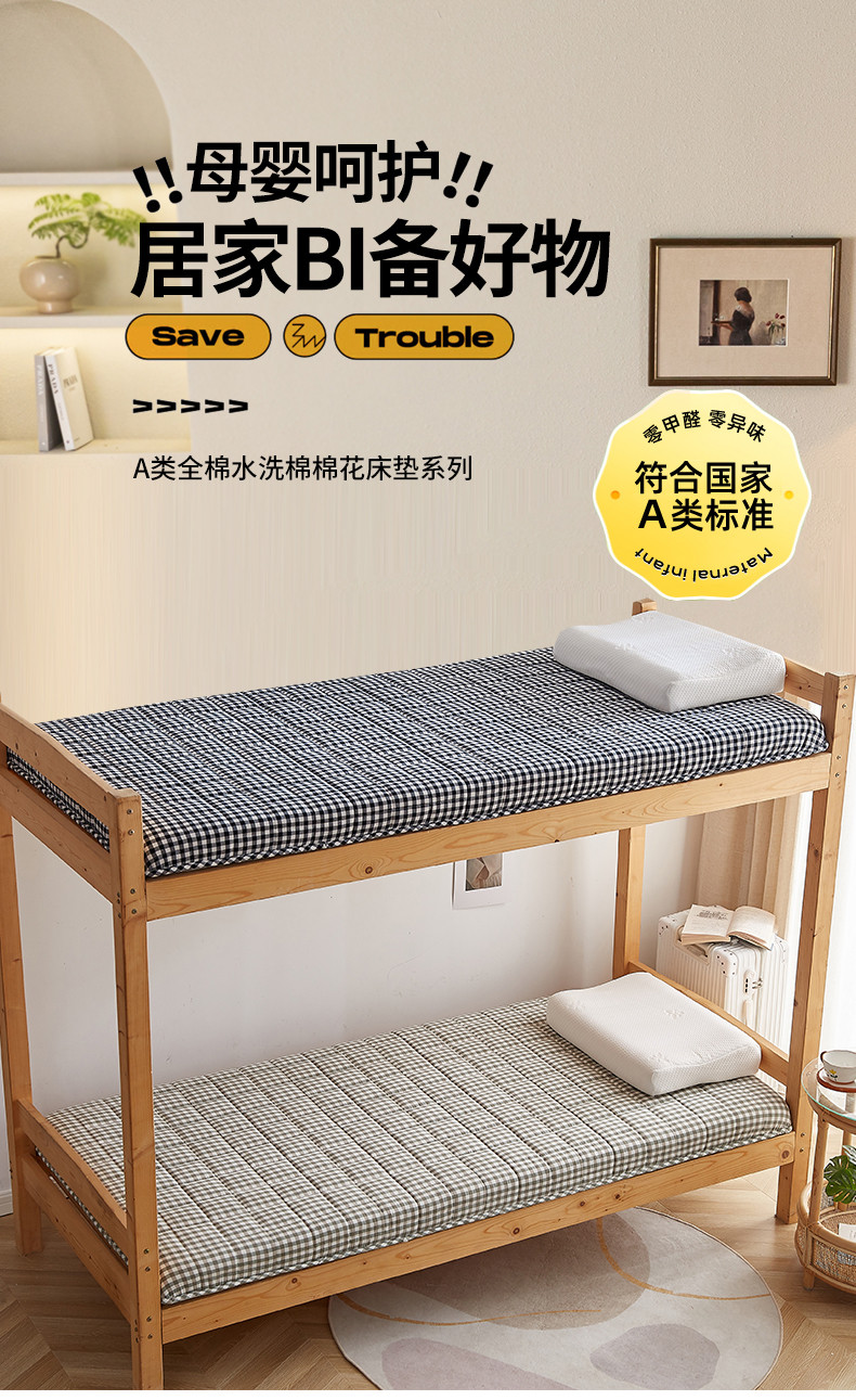 当前位置: 91家纺网 > 商品网购 > 床垫/床褥 > 普通床垫 > 2025新款A类色织全棉水洗棉棉花学生床垫 黑白小格(厚款)