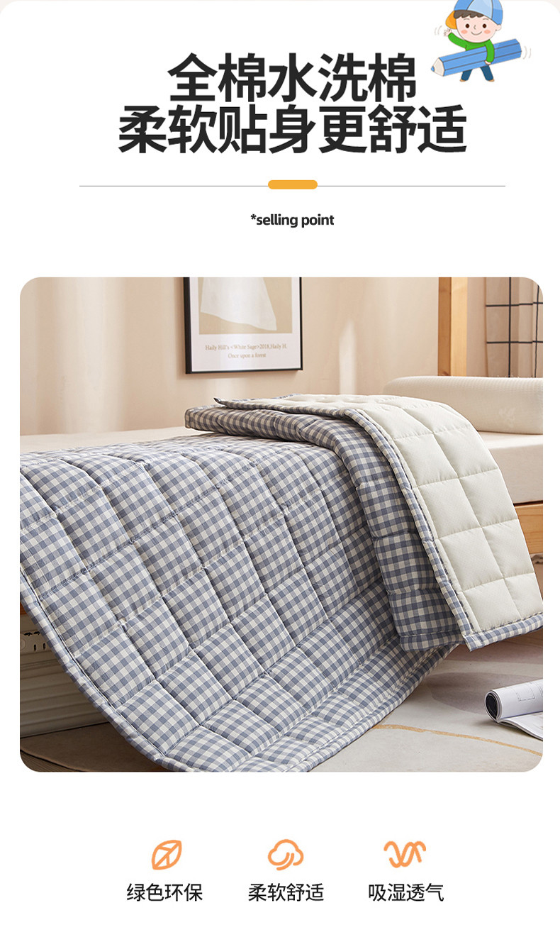 当前位置: 91家纺网 > 商品网购 > 床垫/床褥 > 普通床垫 > 布卢姆 2025新款A类色织全棉水洗棉棉花学生床护垫床褥 蓝小格