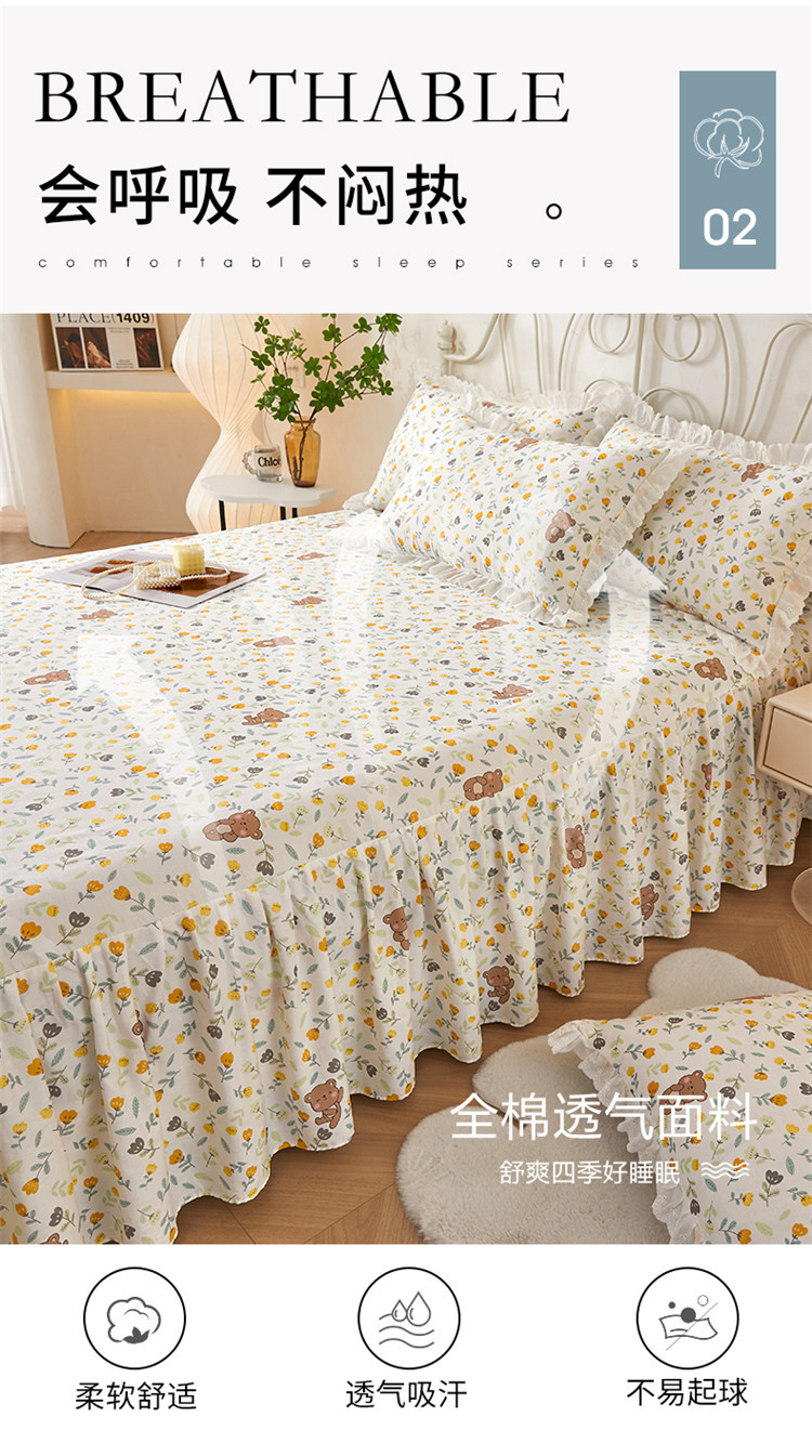 当前位置: 91家纺网 > 商品网购 > 床上用品 > 床裙 > 十个点 2024新款小清新全棉单床裙 朵朵熊
