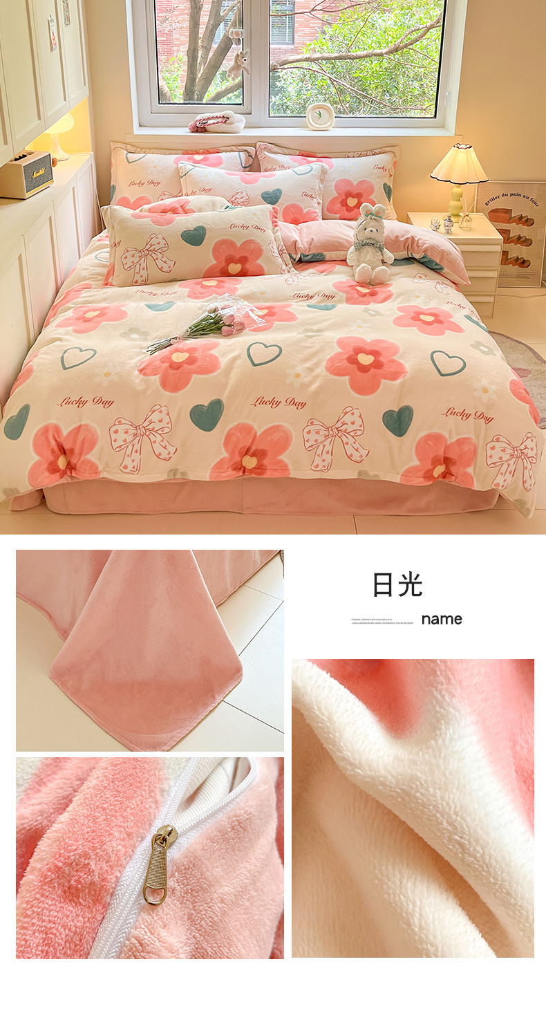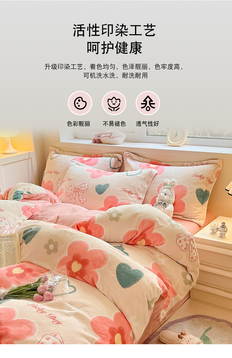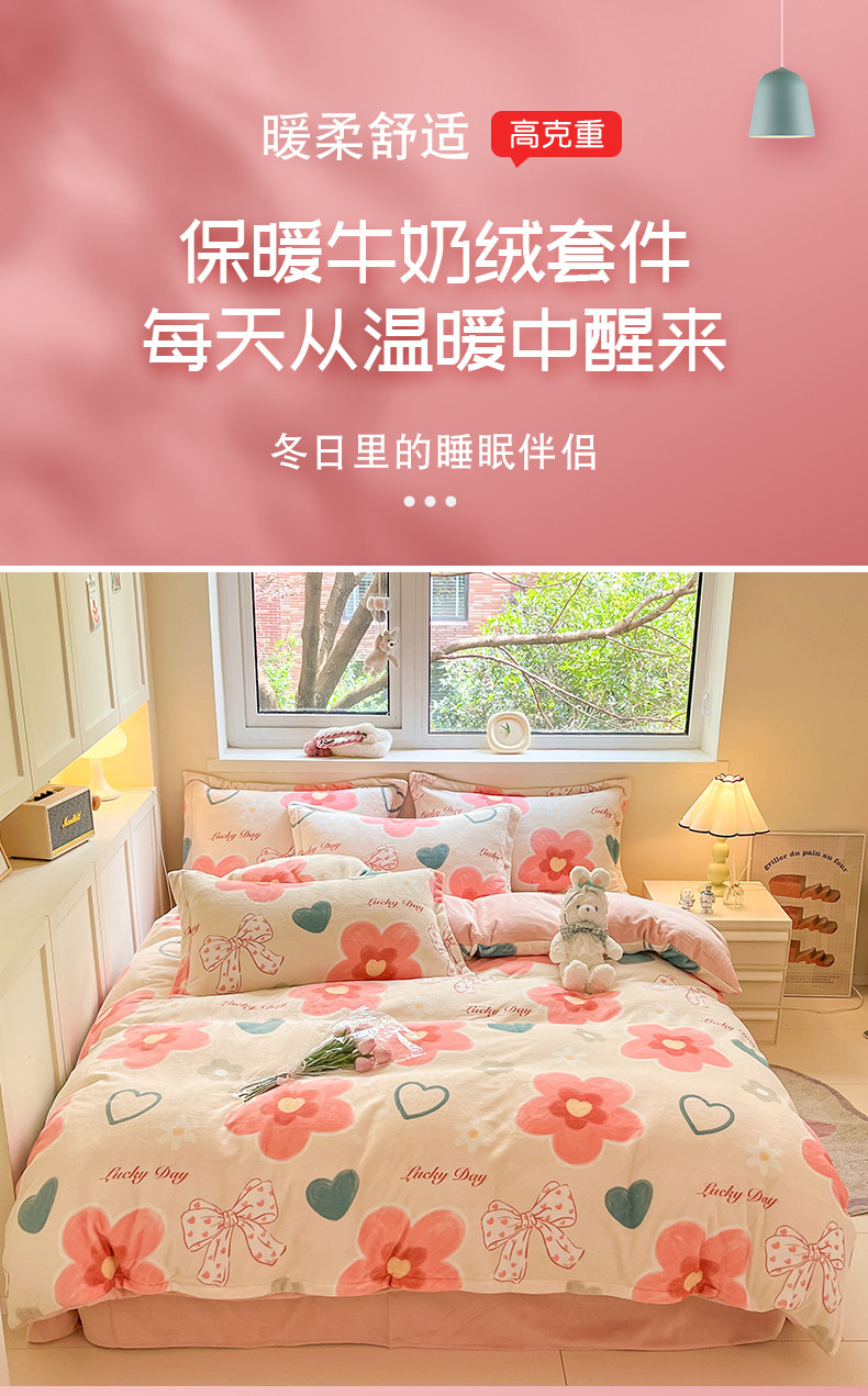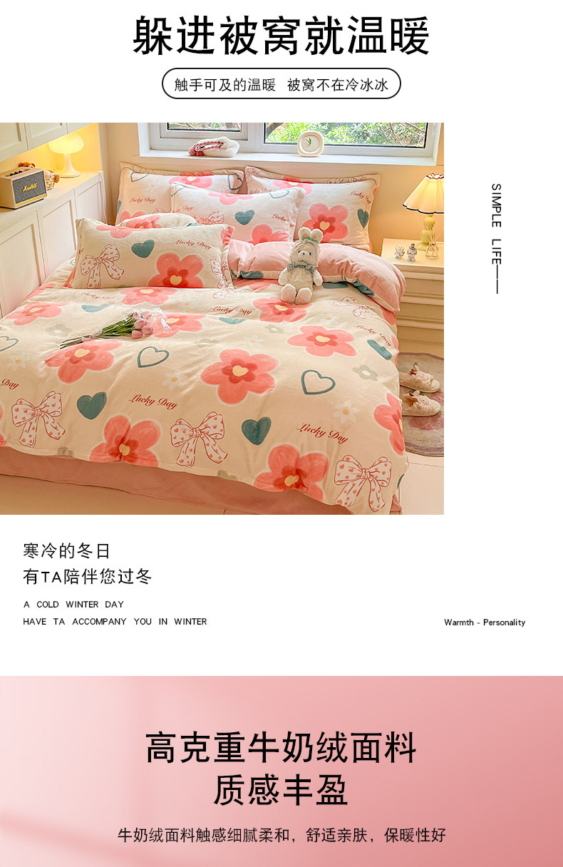 金丝鸟家纺 2023新款220g全消光印花款牛奶绒四件套 日光