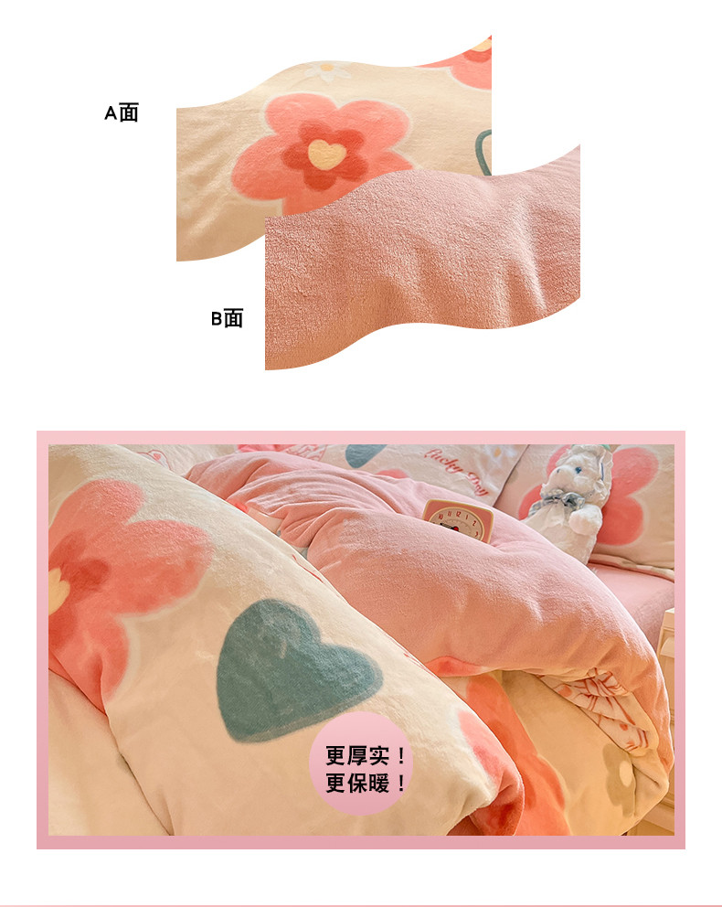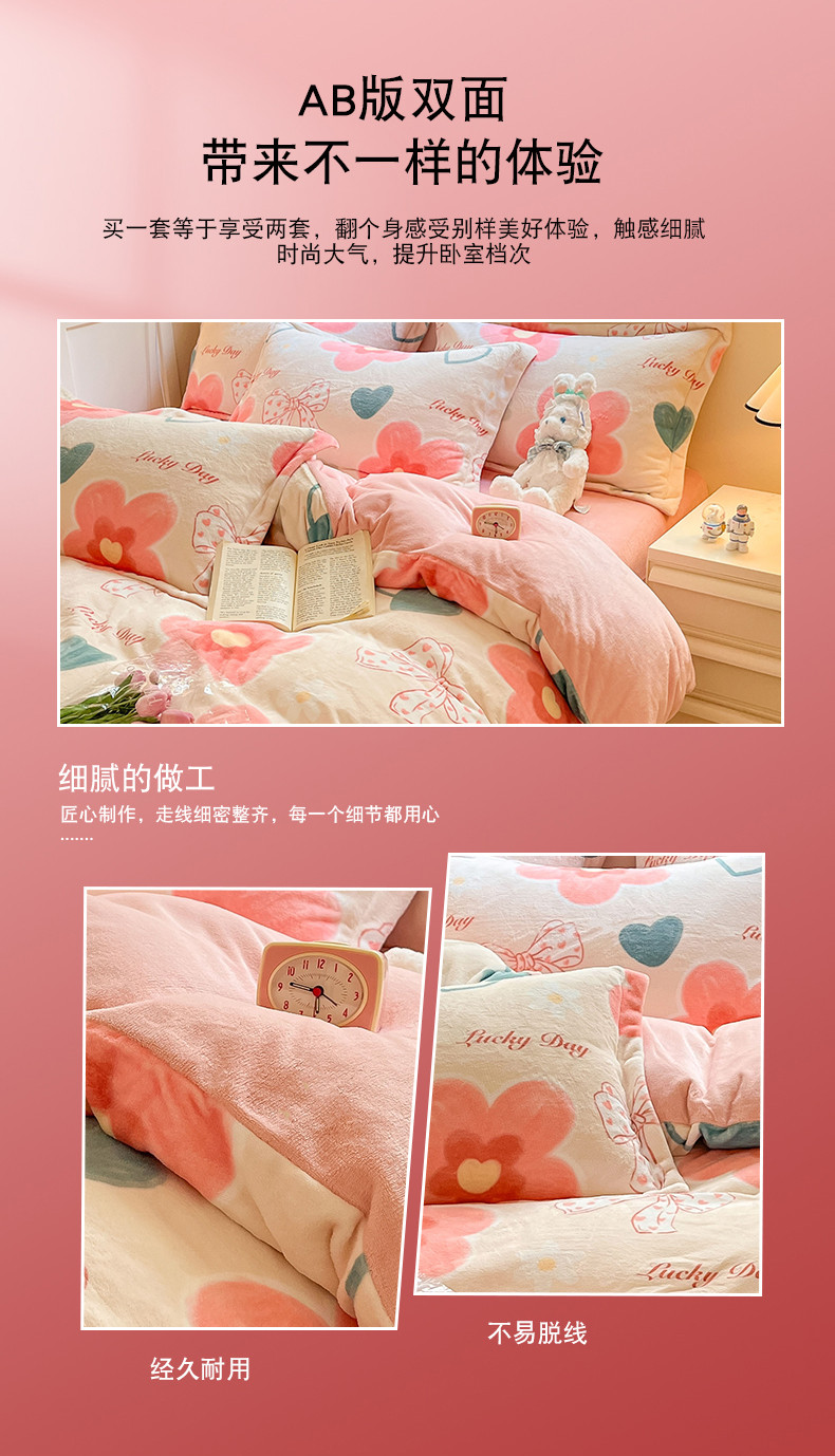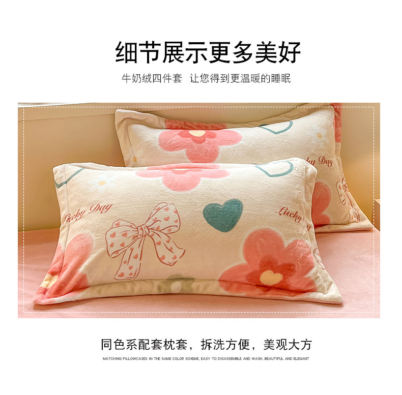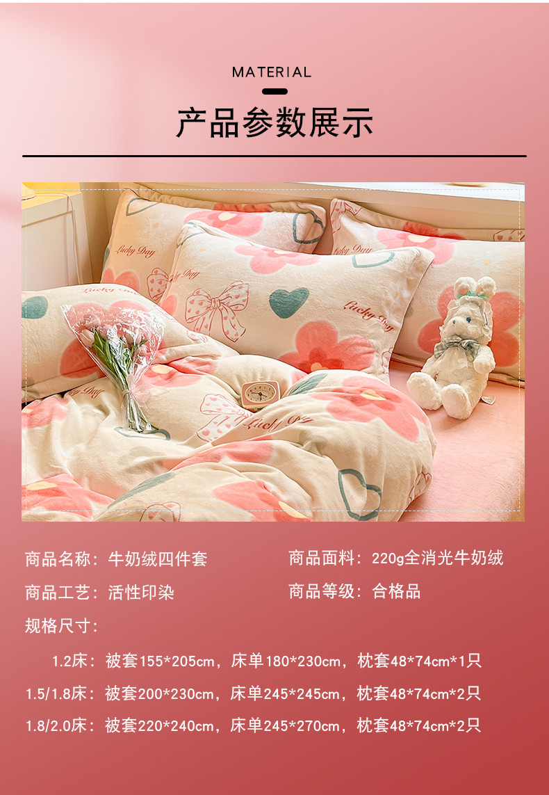 商品名称:金丝鸟家纺 2023新款220g全消光印花款牛奶绒四件套 日光