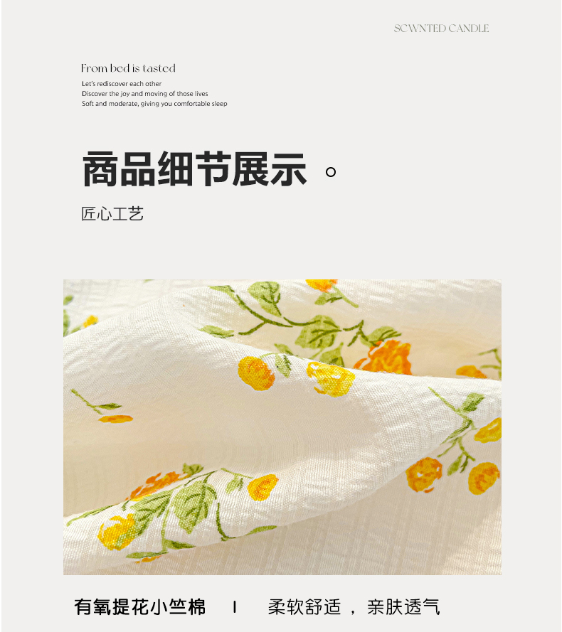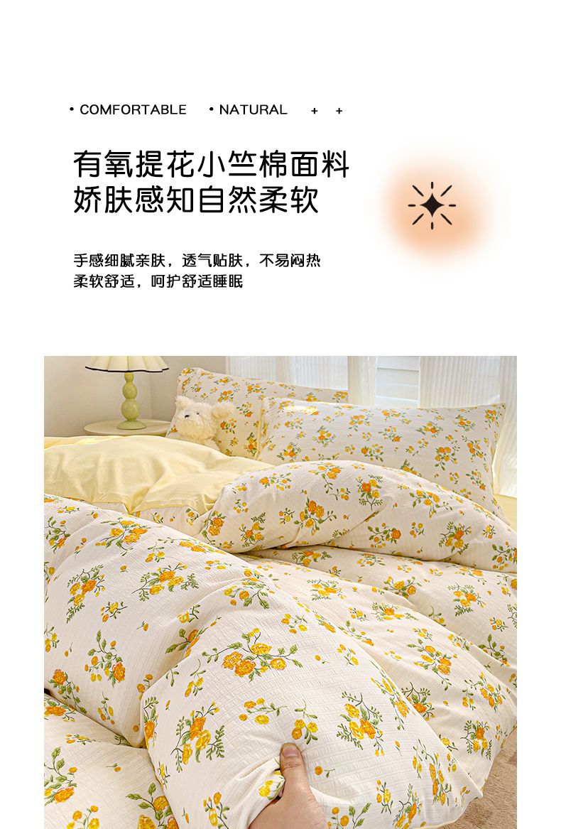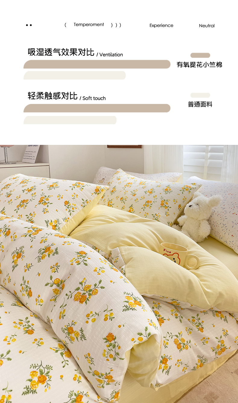 商品名称:总优选良品2025直播爆款新款超柔提花有氧小竺棉双层纱三件套四件套
