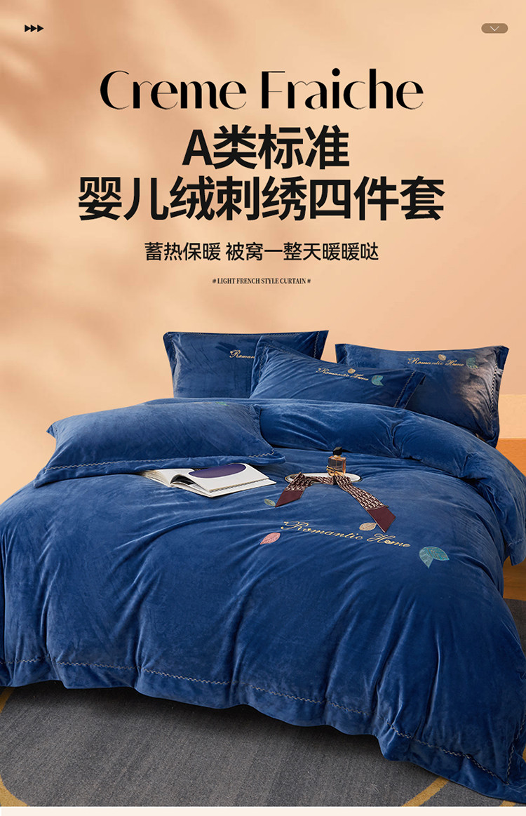 商品名称:(总)瑞驰家纺 2023新款A类婴儿绒刺绣加厚保暖四件套—艾丽莎