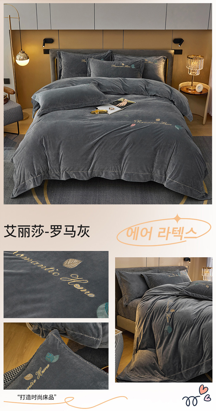 (总)瑞驰家纺 2023新款A类婴儿绒加厚保暖四件套,宾利兰+摩登灰,宾利兰,豆沙红+摩登灰,豆沙红,姜黄+摩登灰,罗马灰,倾城粉+摩登灰,松石绿,叶脉绿+摩登灰,优雅紫