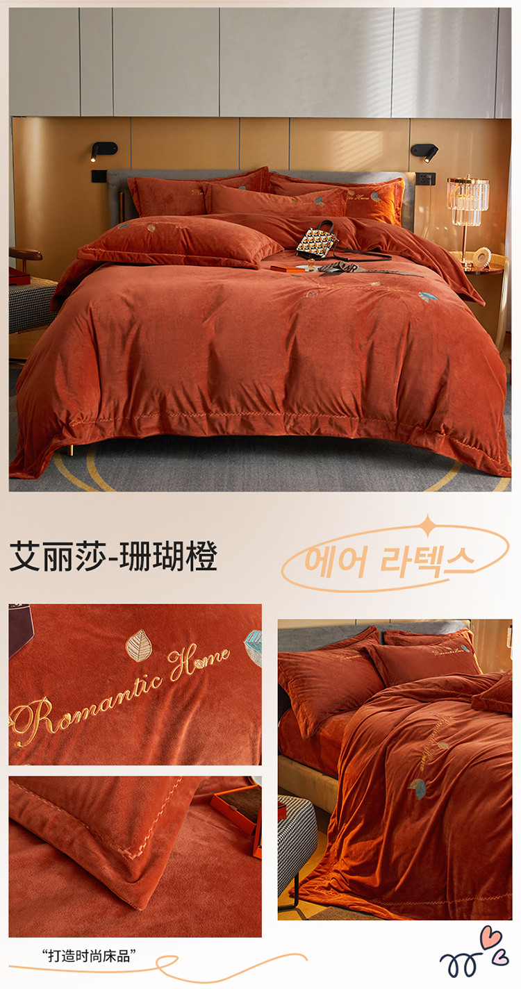 (总)瑞驰家纺 2023新款A类达标加厚保暖婴儿绒四件套 艾丽莎系列,艾丽莎-宾利蓝,艾丽莎-豆沙红,艾丽莎-姜黄,艾丽莎-卡其,艾丽莎-罗马灰,艾丽莎-珊瑚橙,艾丽莎-深湖绿,艾丽莎-叶脉绿,艾丽莎-优雅紫