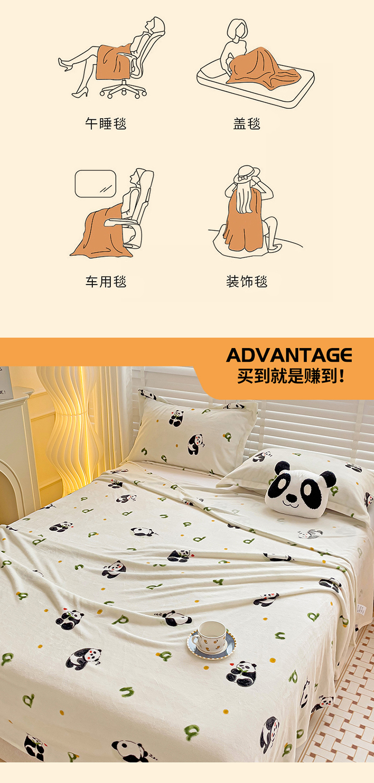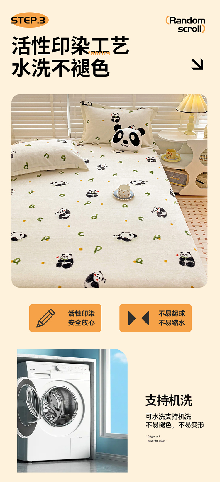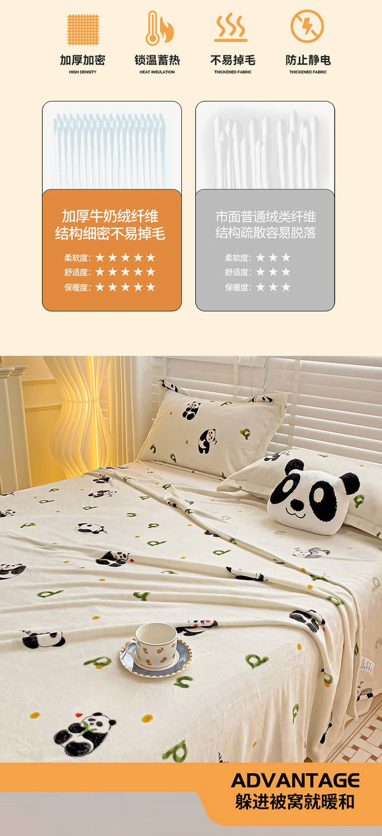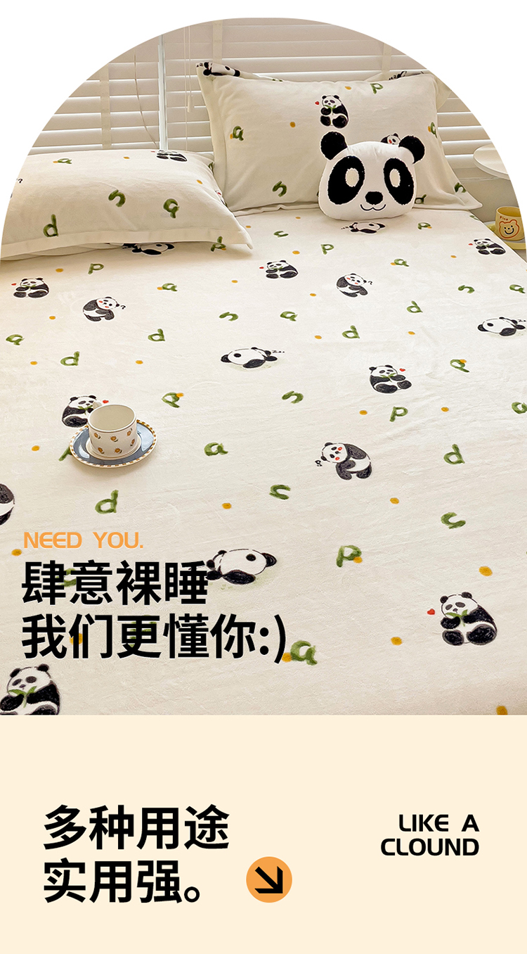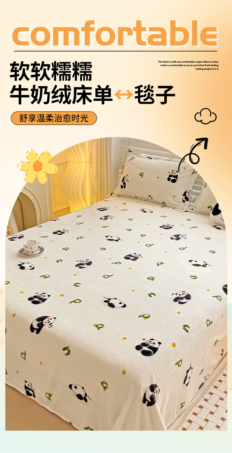 • 91家纺网 家纺一手货源 找家纺 名兮家居 2023新款高克重牛奶绒床单 字母熊猫