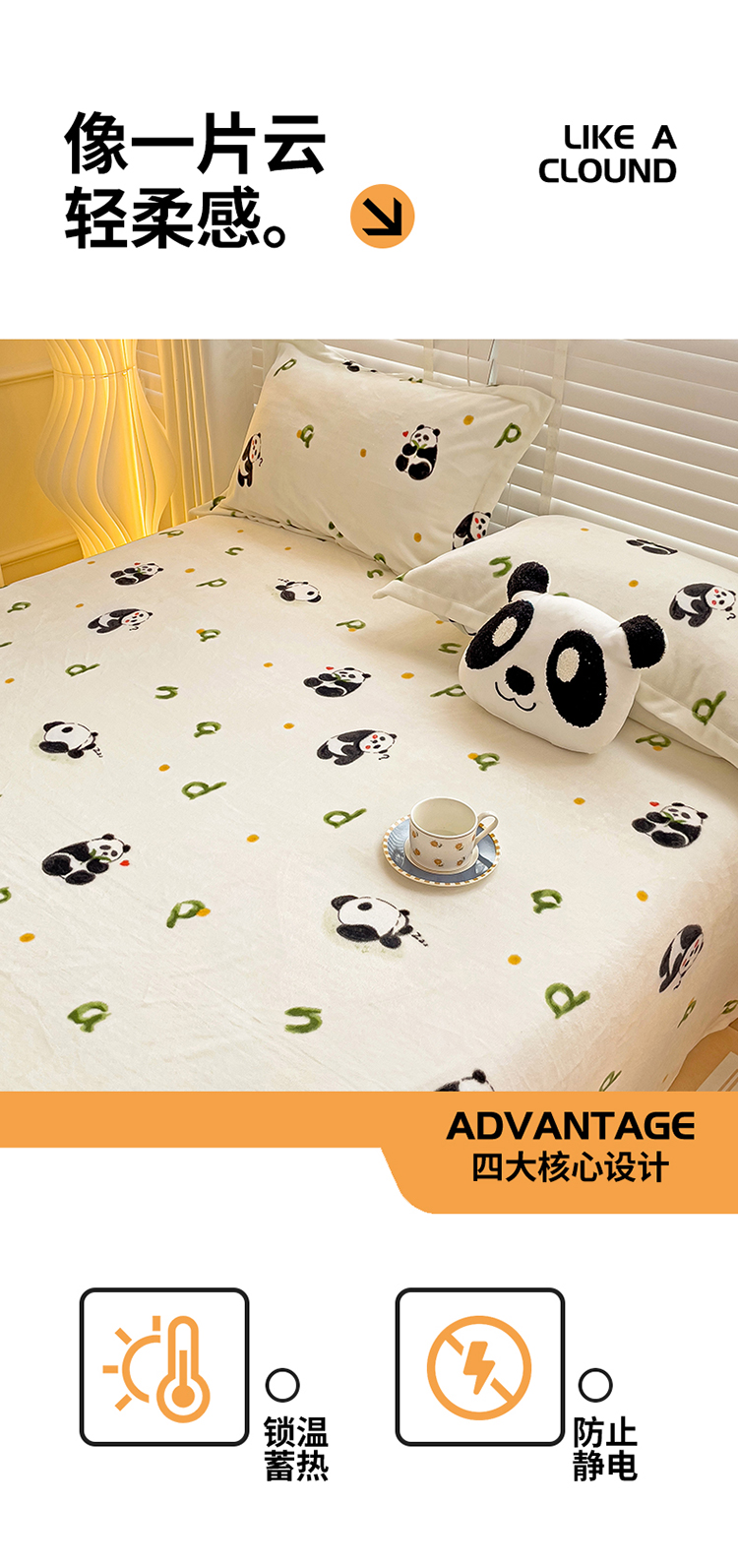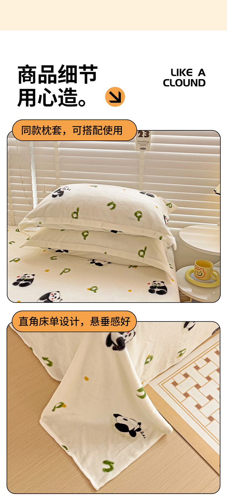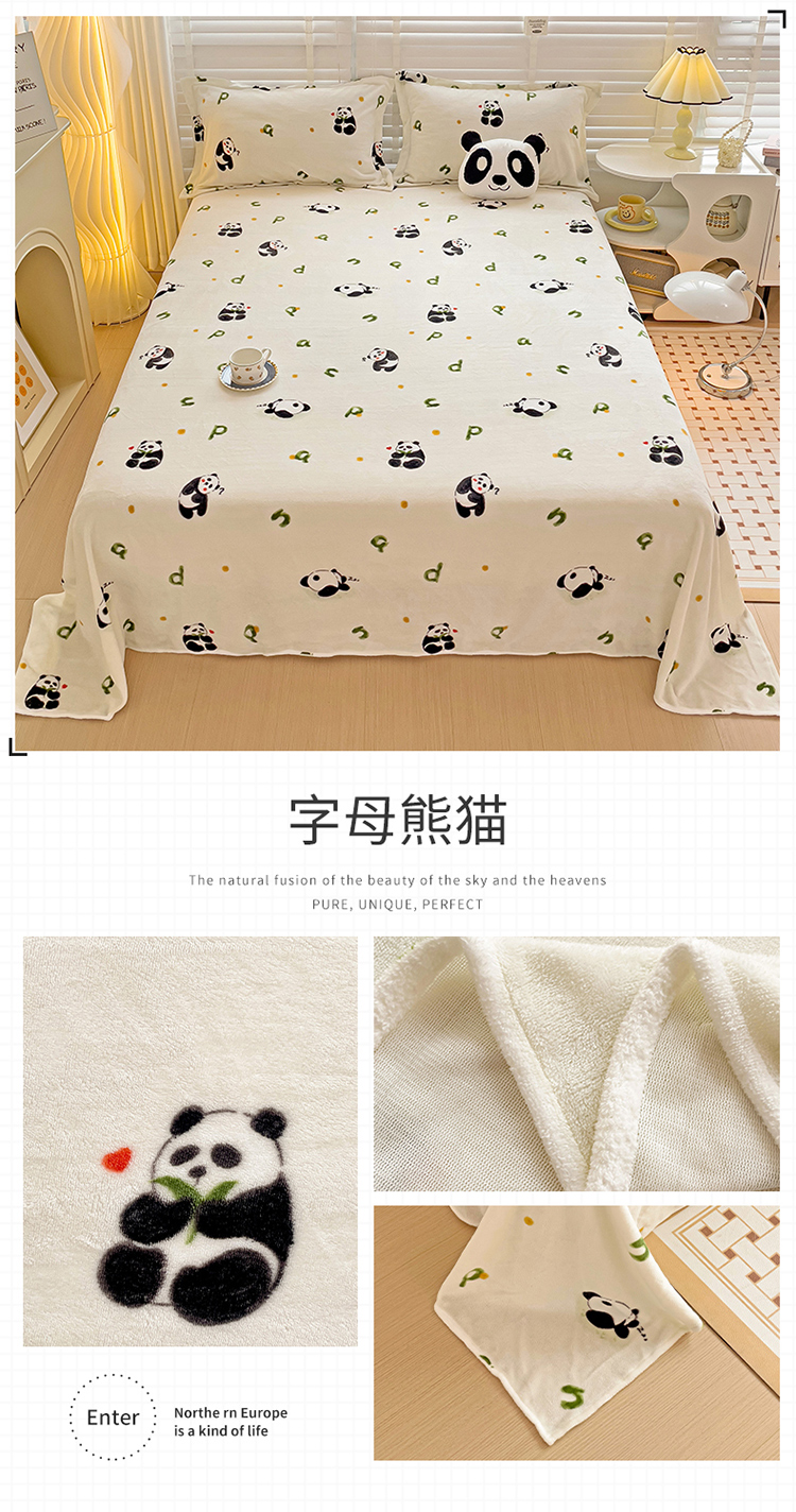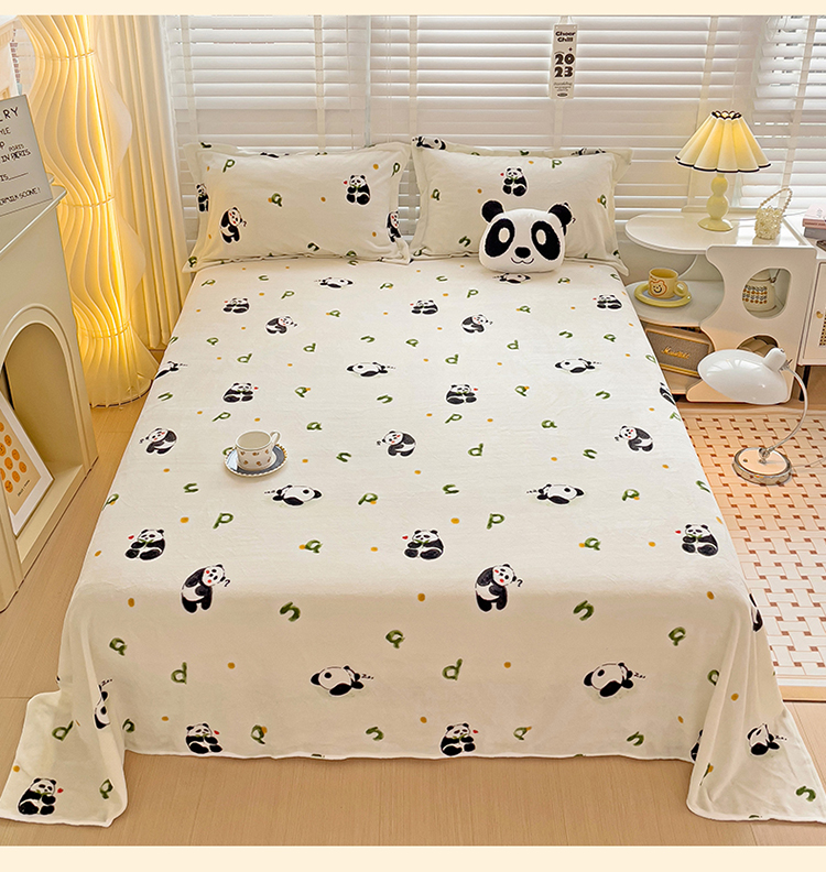 名兮家居 2023新款高克重牛奶绒床单 字母熊猫