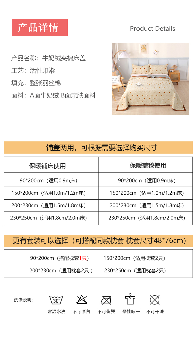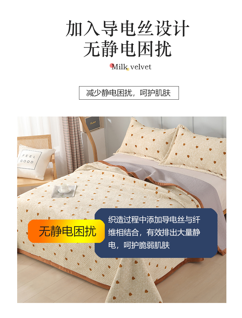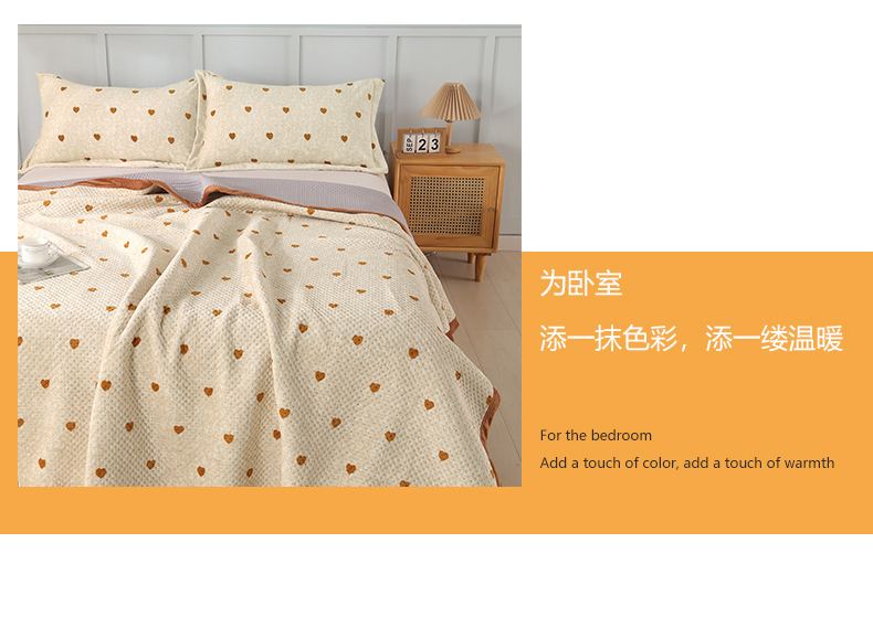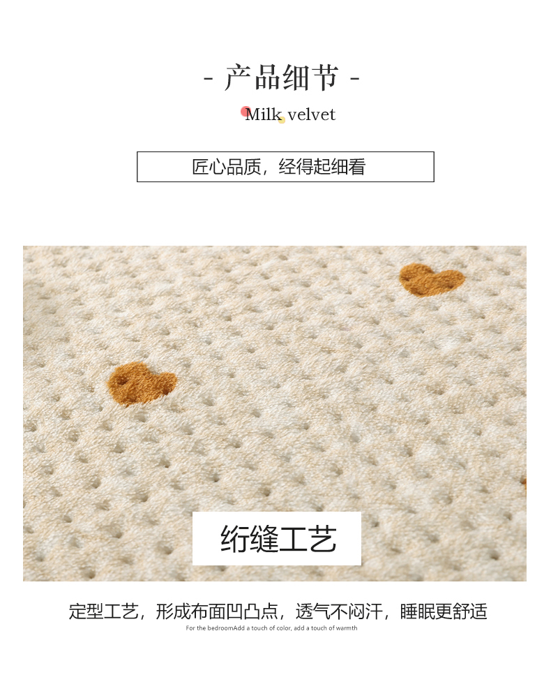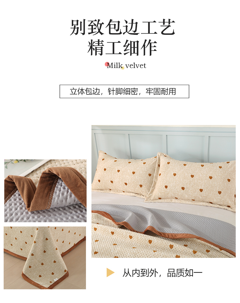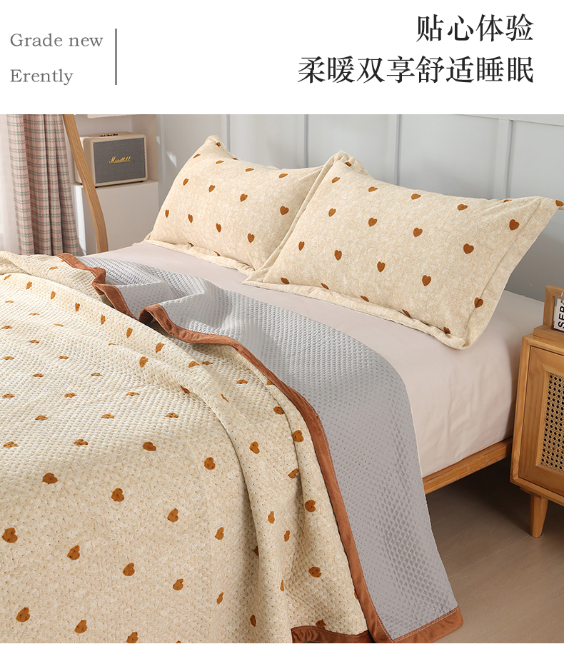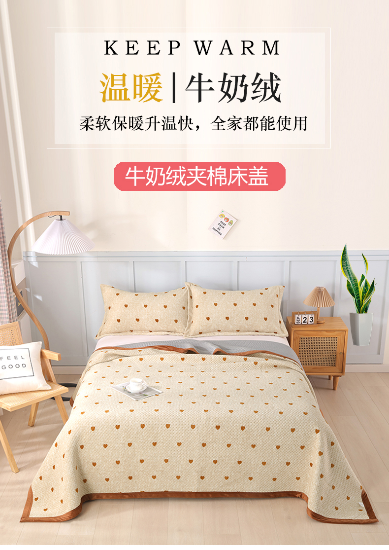 • 91家纺网 家纺一手货源 找家纺 胜权 2024款高克重牛奶绒夹棉单床盖单件保暖床盖三件套 黄色爱心