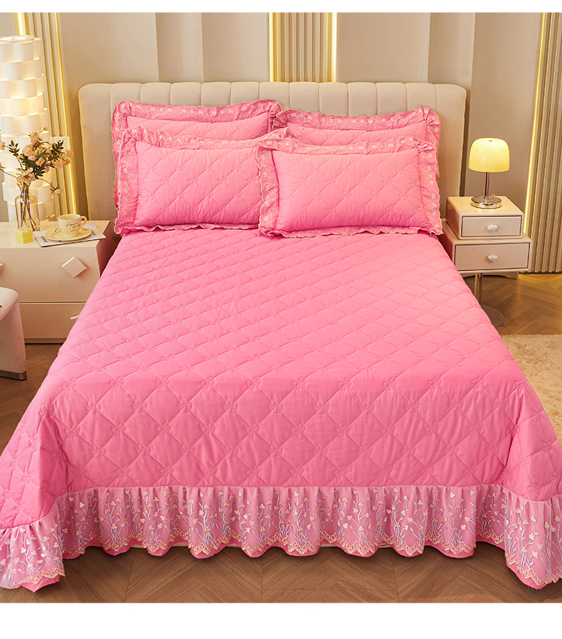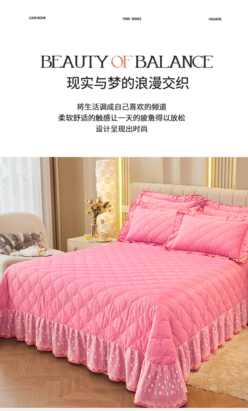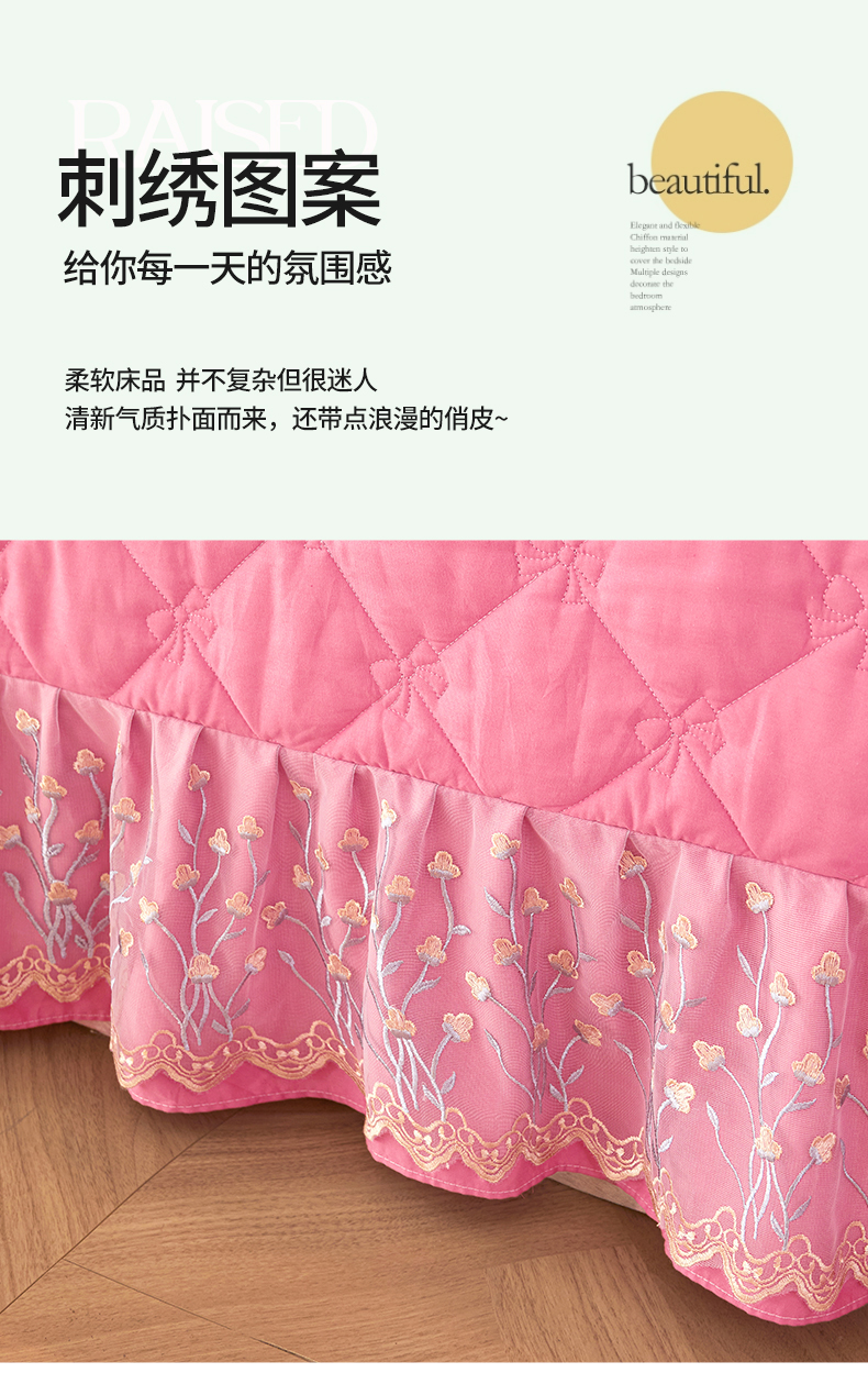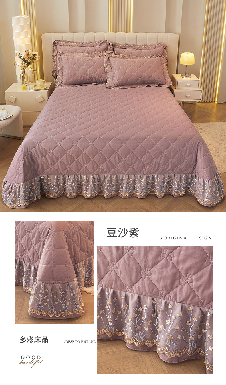 (总)恒爱家纺 2025新款牛奶绒贴布绣夹棉床裙四件套,豆沙红,浪漫紫,天空蓝,温馨粉,象牙白