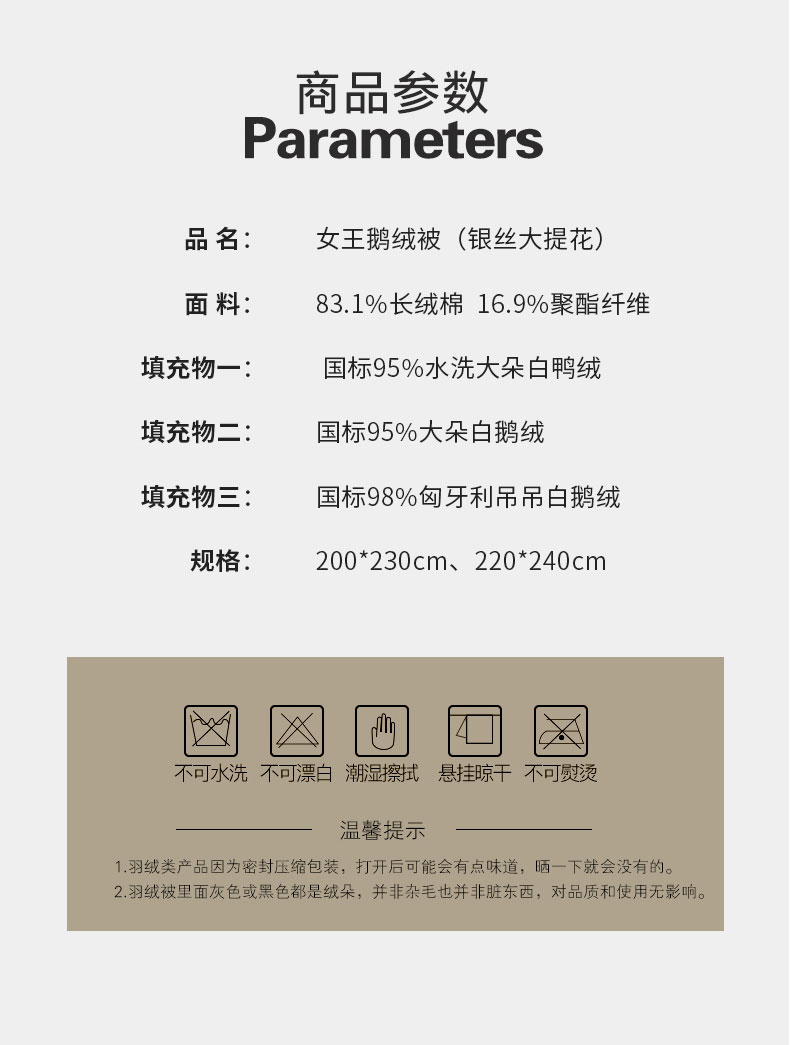 220*240 cm(国标98%匈牙利吊吊白鹅绒1500g) | ¥2270.00 |