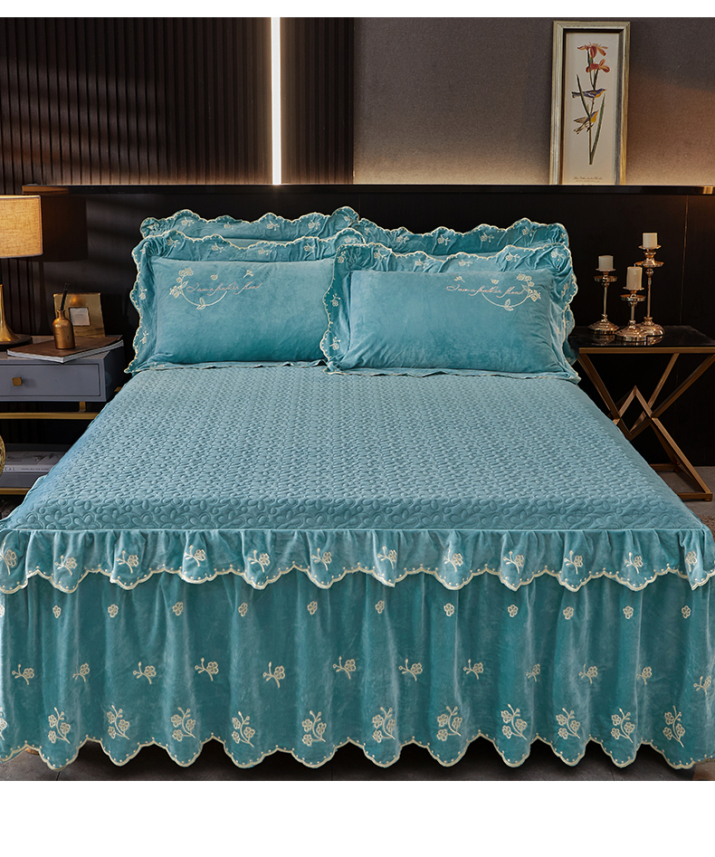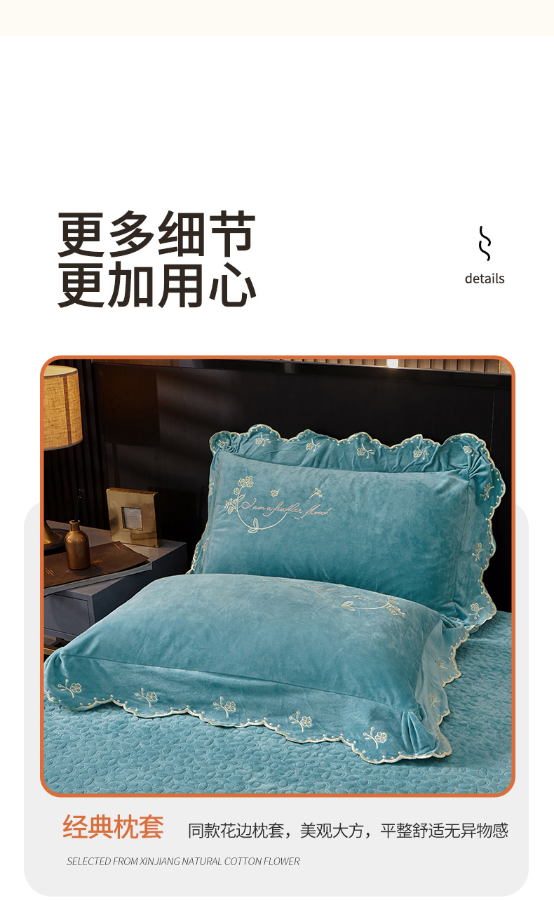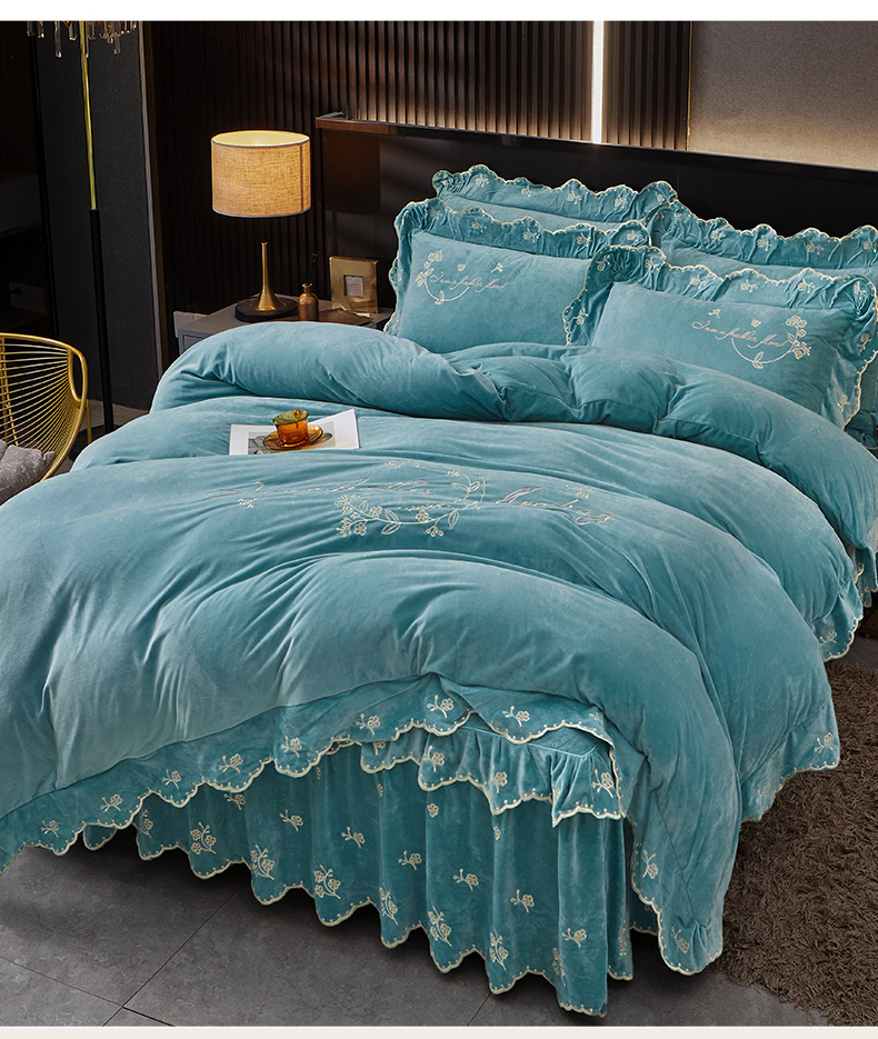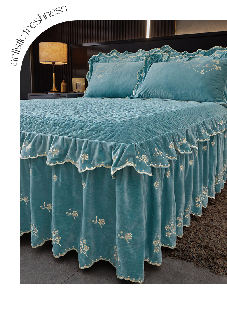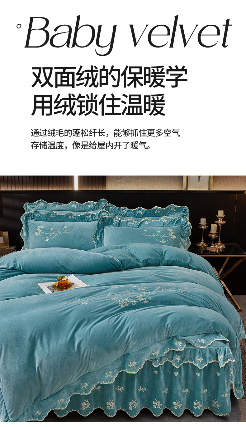 当前位置: 91家纺网 > 商品网购 > 床品套件 > 四件套 > 宝宝绒四件套 > 2023 恒爱家纺 花好月圆宝宝绒床裙四件套 浅灰兰