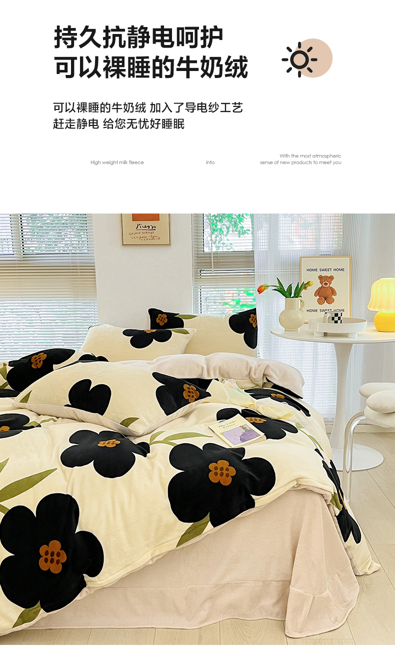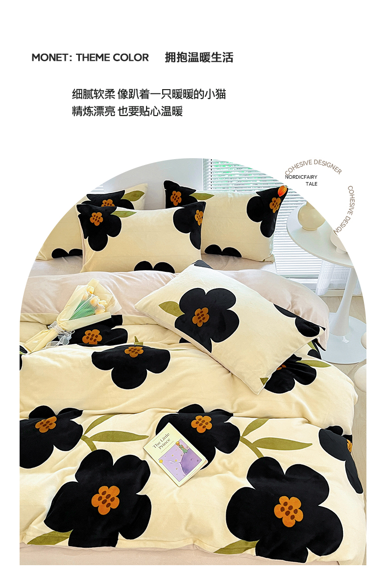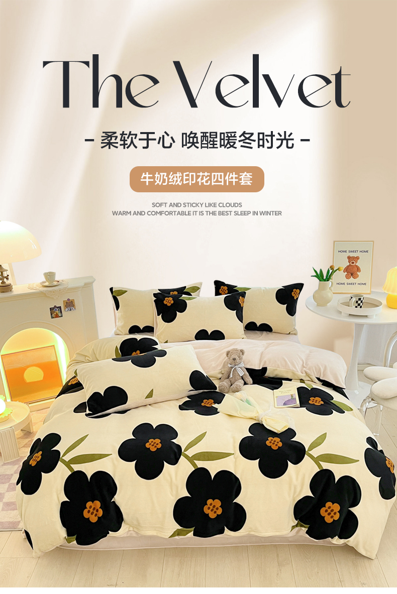 (总)帅露家纺 2025新款加厚保暖牛奶绒印花四件套美拉德系列,波点-米,繁花似锦-粉,海棠碎影-紫,罗曼,玫瑰之吻,清雅,山奈-米,虞美人-紫,韵华,韵华-灰