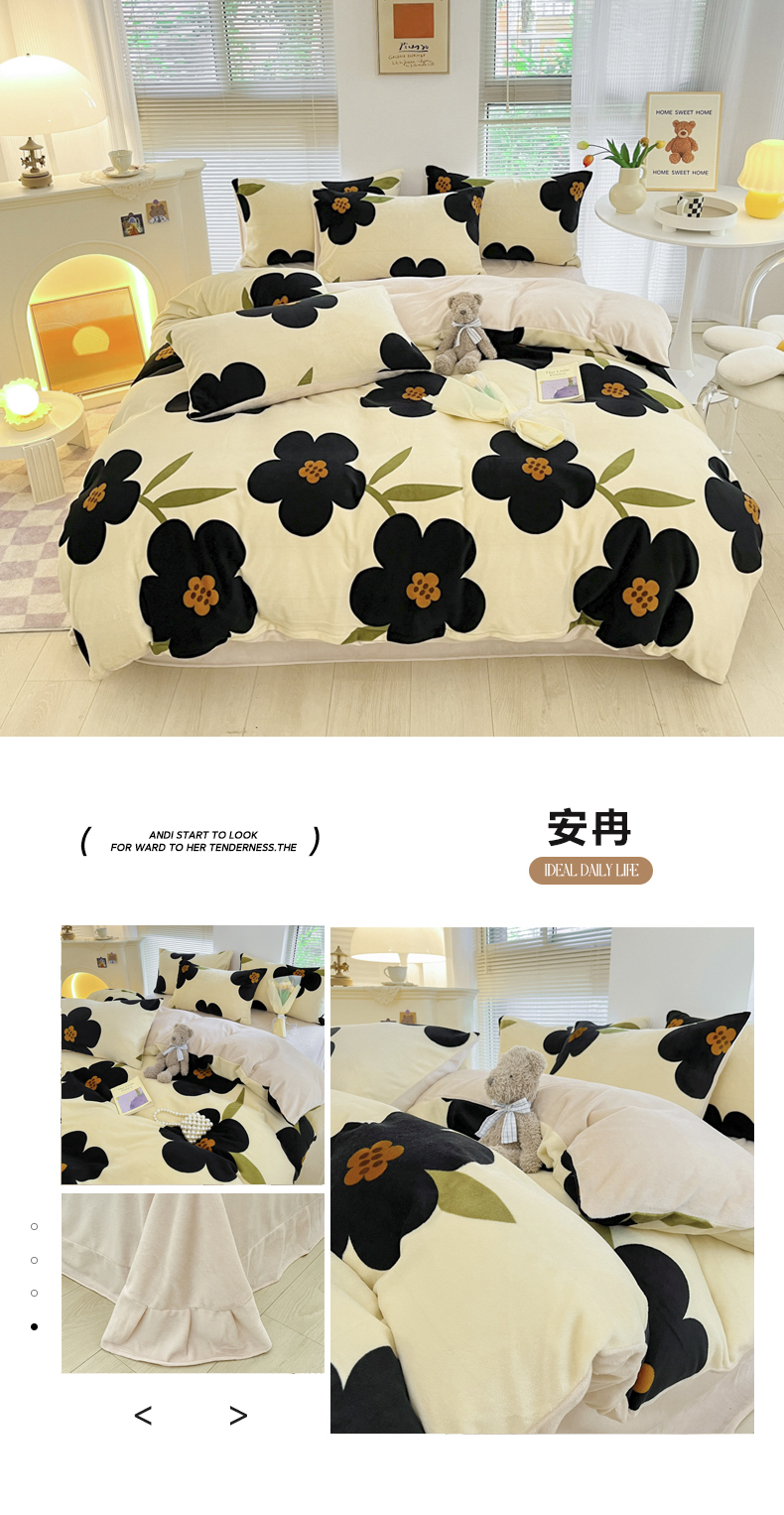 帅露 2023款200g高克重亲肤吊边款印花牛奶绒四件套 安冉