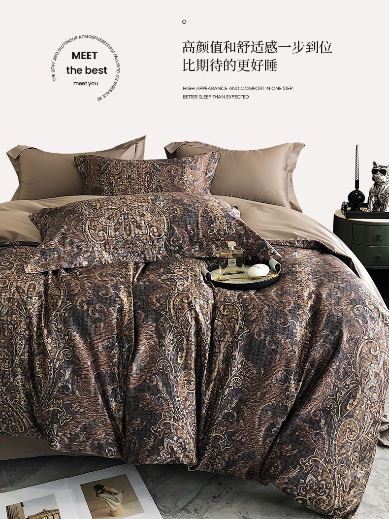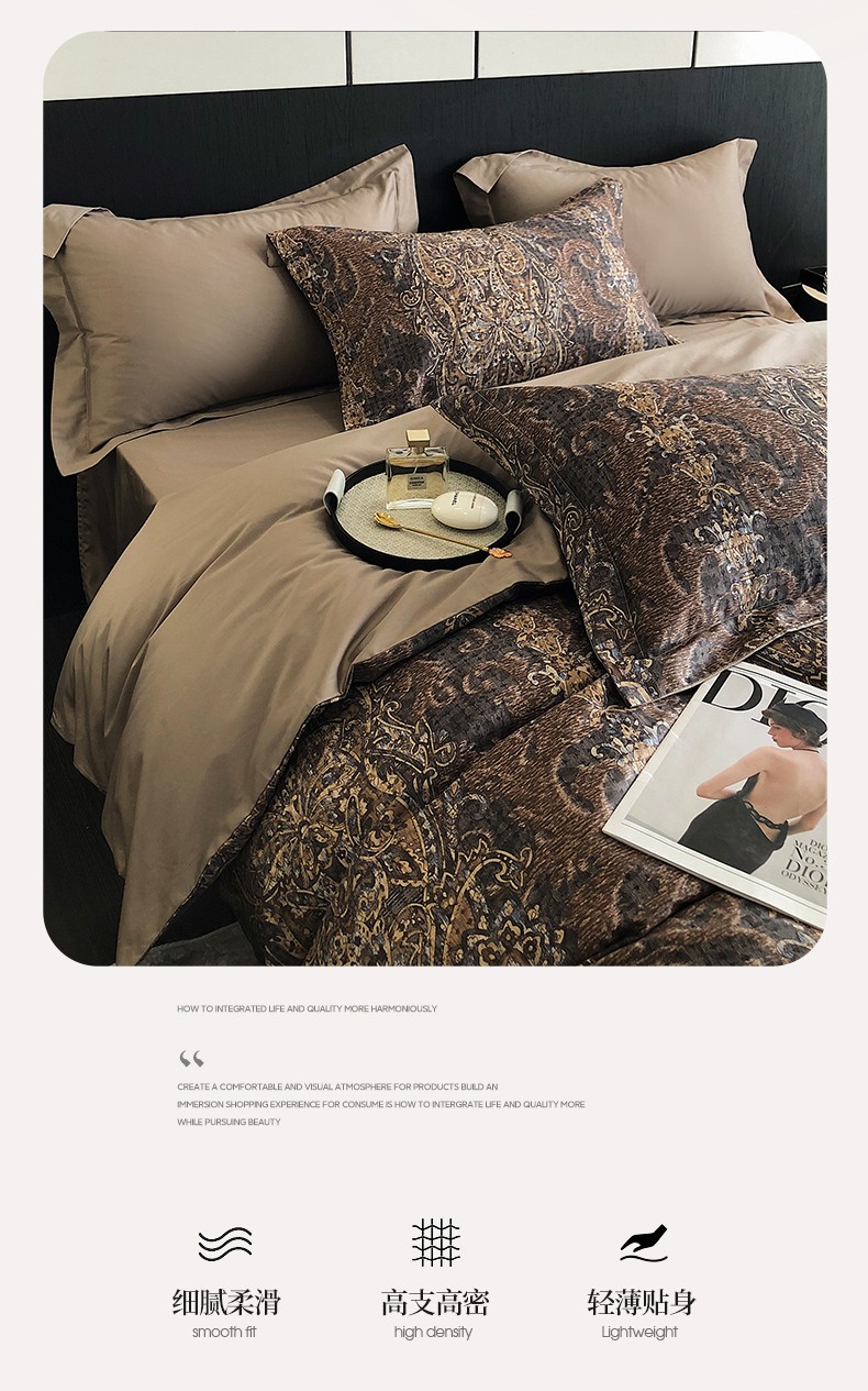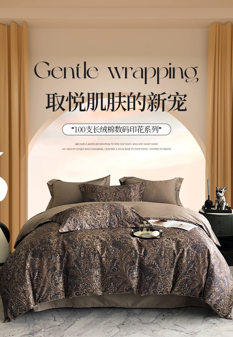 商品名称:红馆 2003新款轻奢高支棉臻品100支数码印花四件套--简约款 夜寐