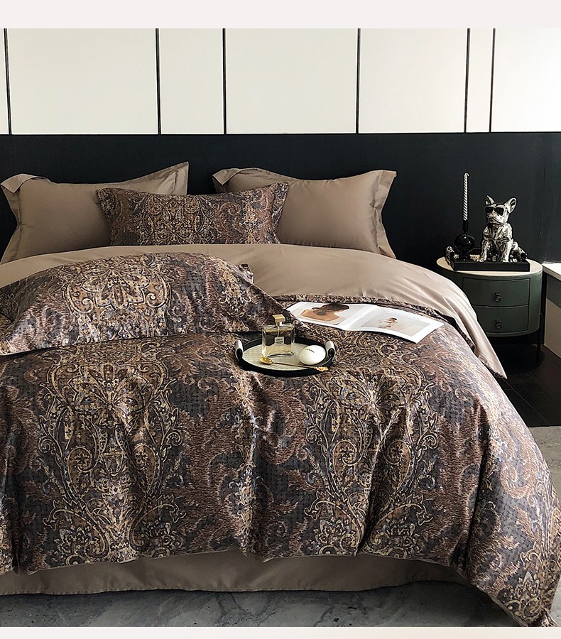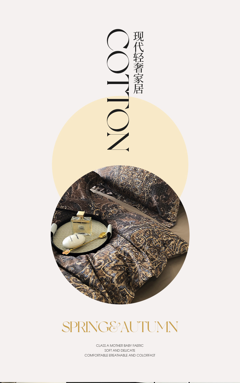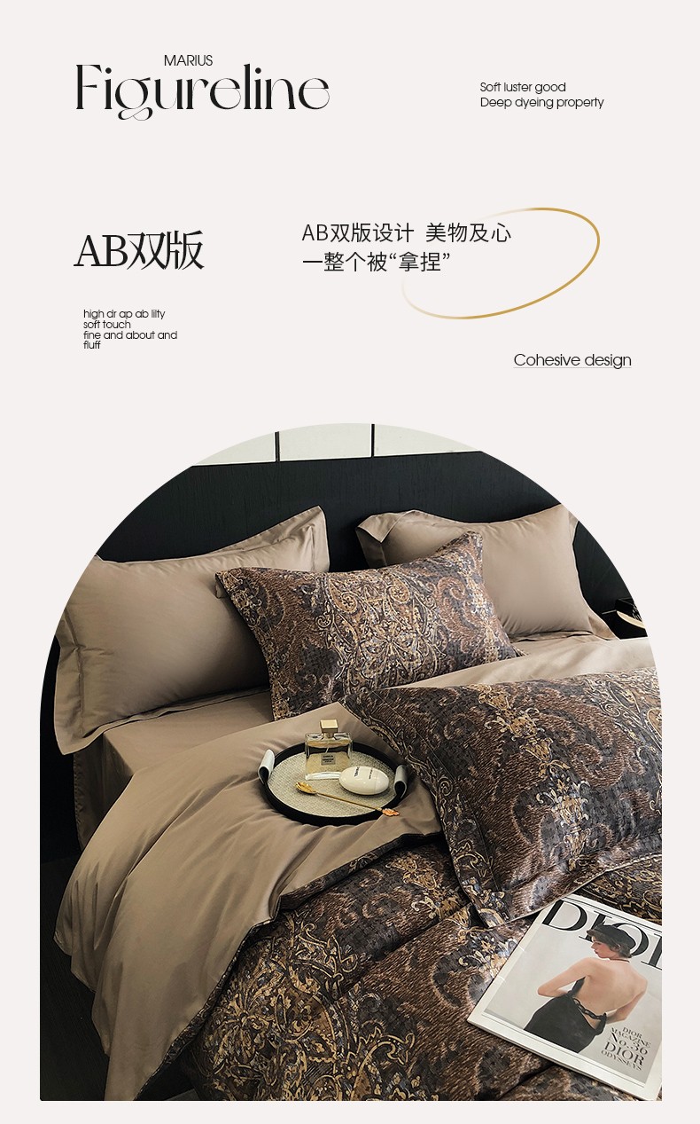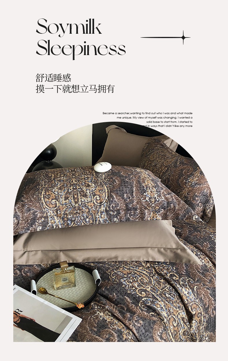 商品名称:红馆 2003新款轻奢高支棉臻品100支数码印花四件套--简约款 夜寐