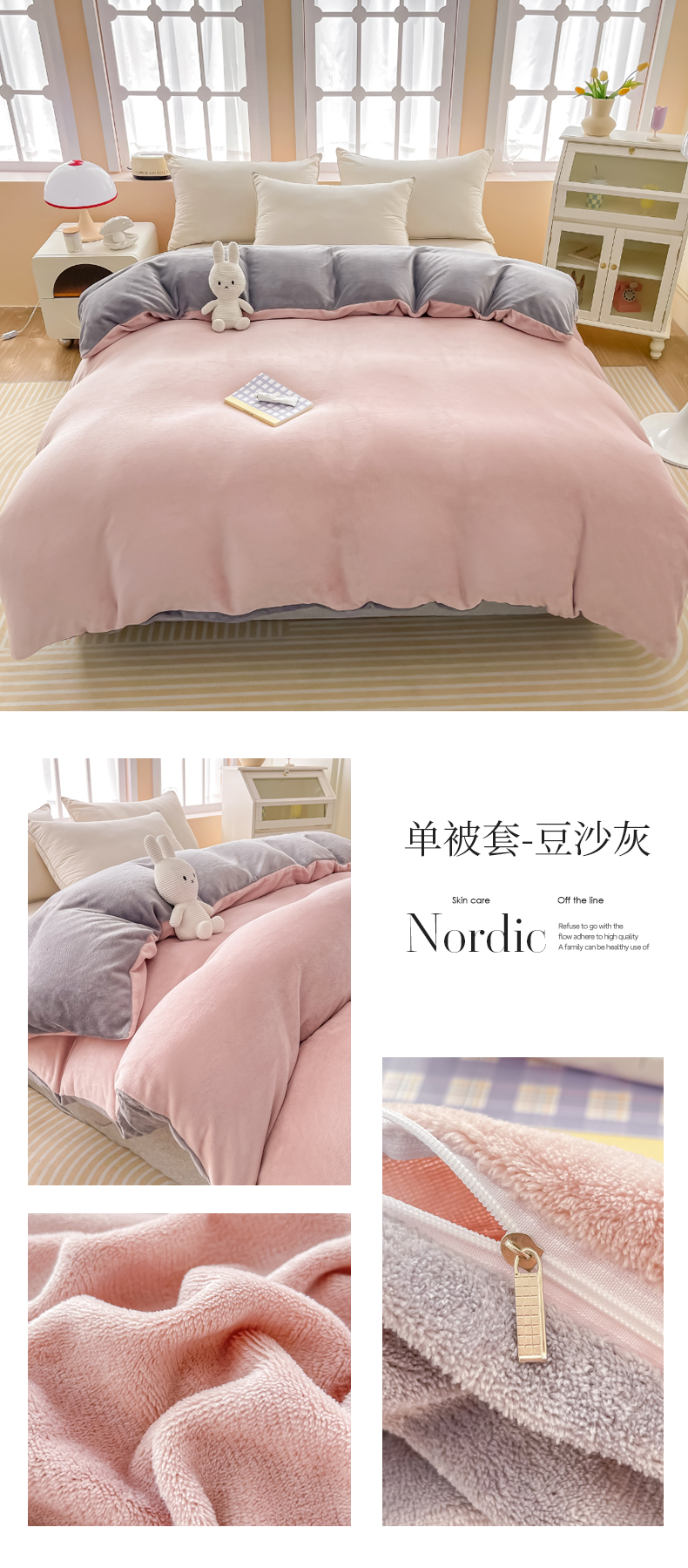 商品名称:莎臣豹 2025新款牛奶绒双拼撞色系单被套 豆沙灰