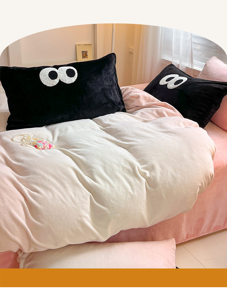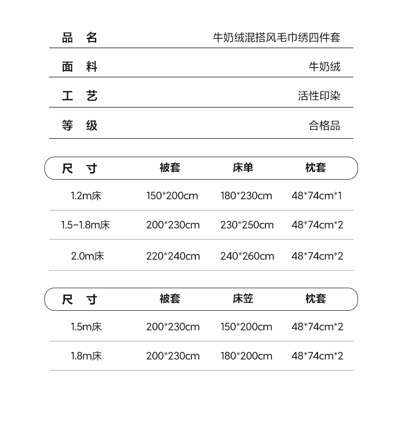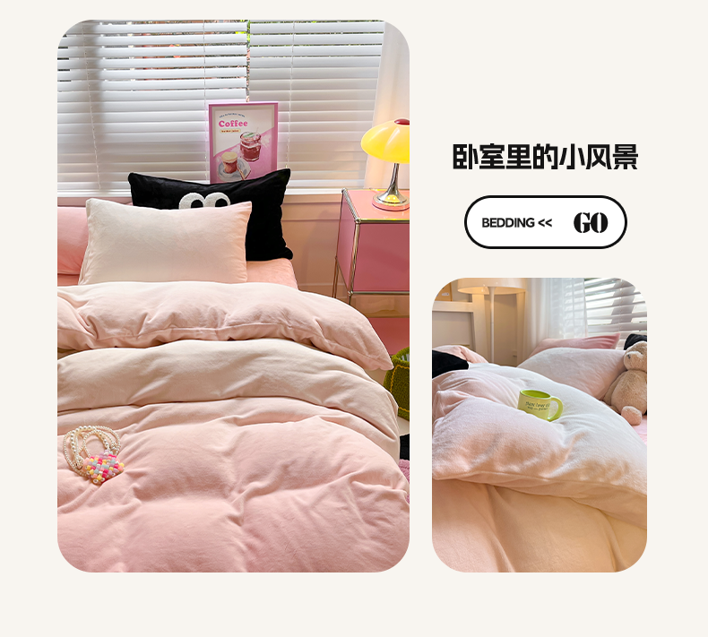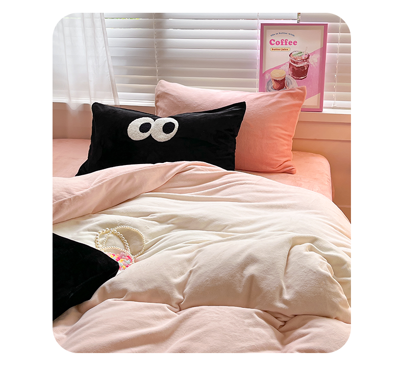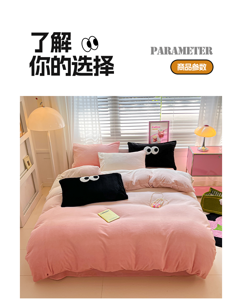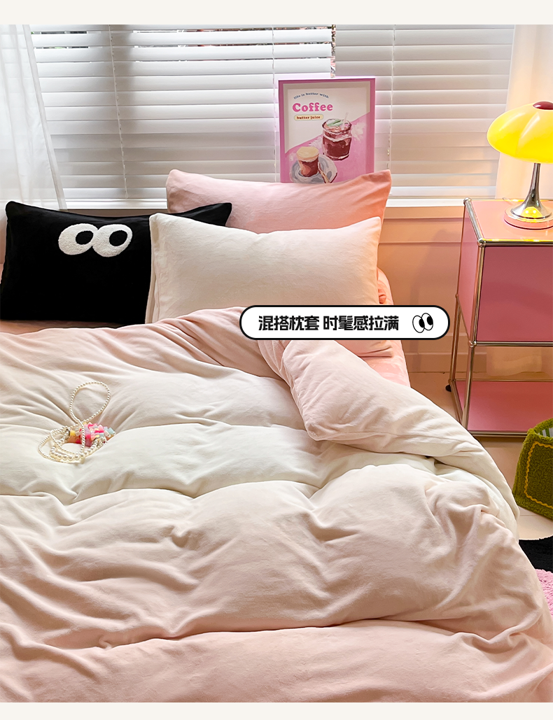 商品名称:雅居纺家纺 2023新款毛巾绣混搭牛奶绒四件套 渐变混搭粉