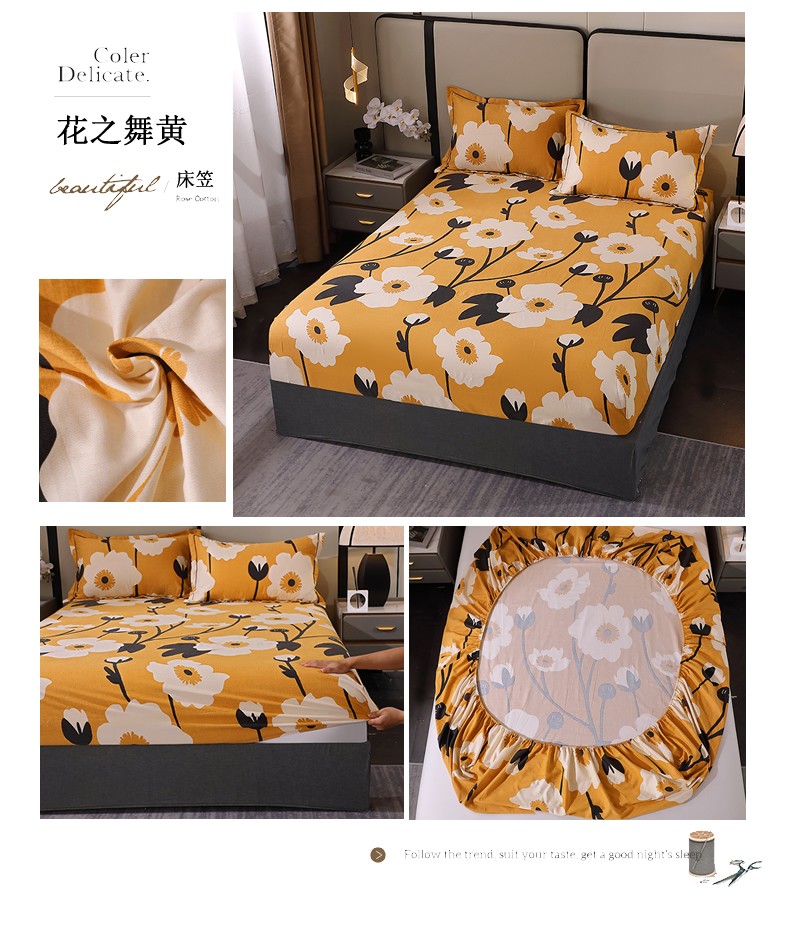 商品名称:晶缦 2023新款格林系列全棉活性磨毛多规格床笠 花之舞黄