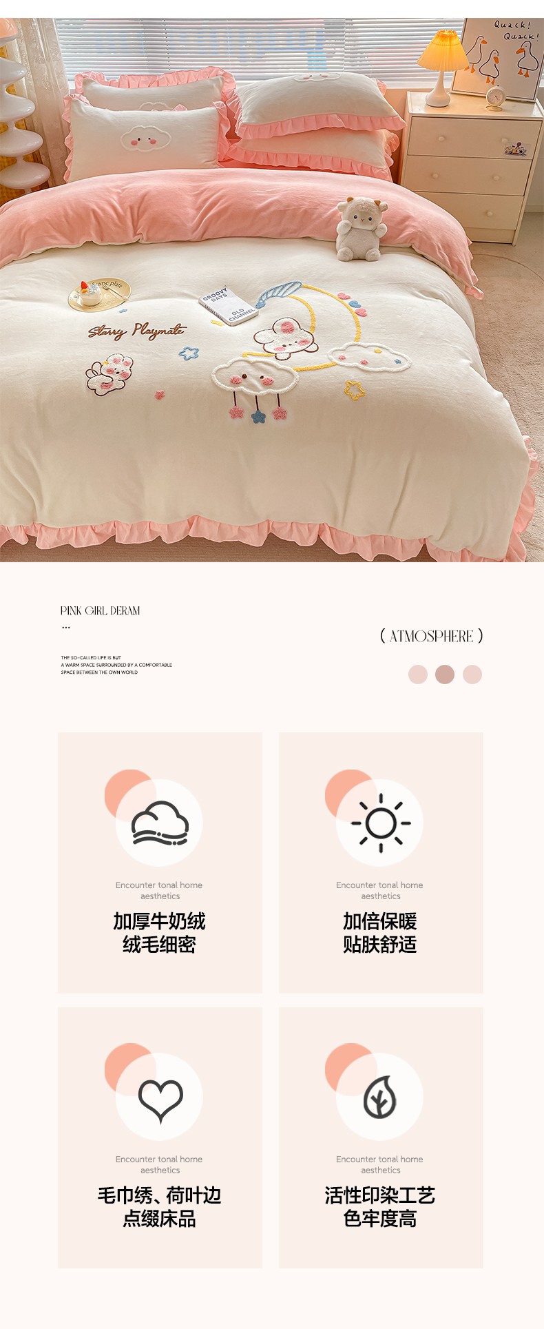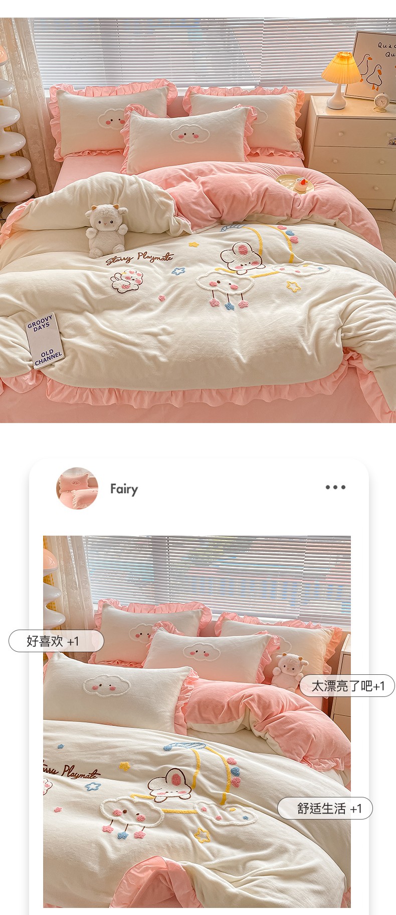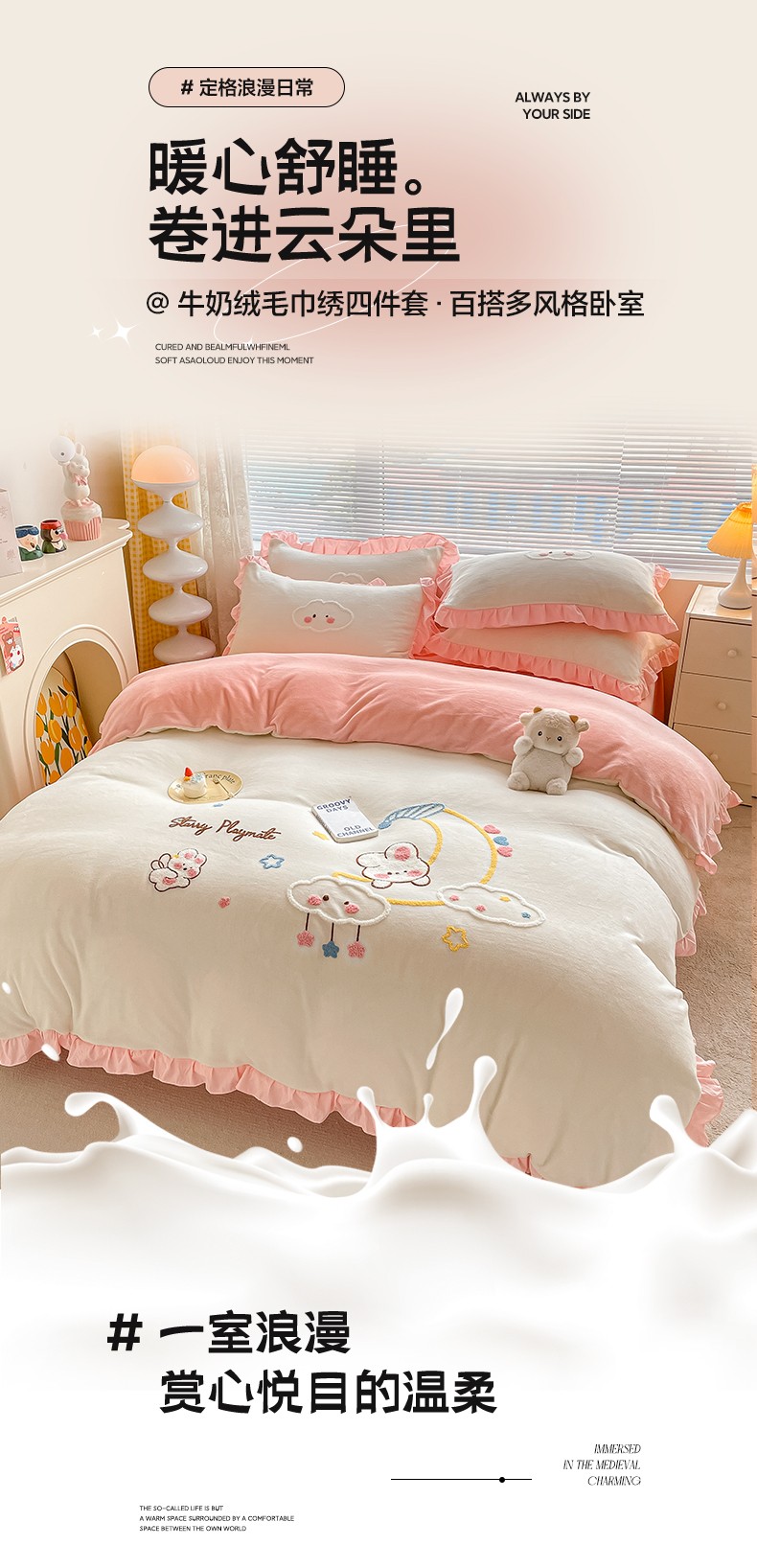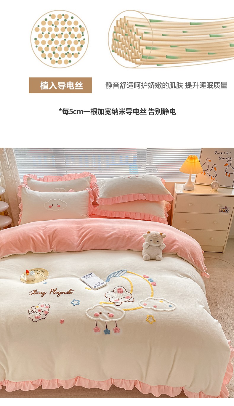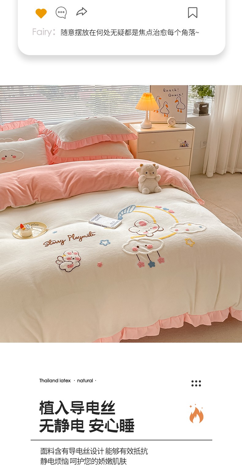 当前位置: 91家纺网 > 商品网购 > 床品套件 > 四件套 > 牛奶绒四件套 > 易禾 2024新款牛奶绒毛巾绣兔绒花边四件套-月牙 月牙兔-奶白粉