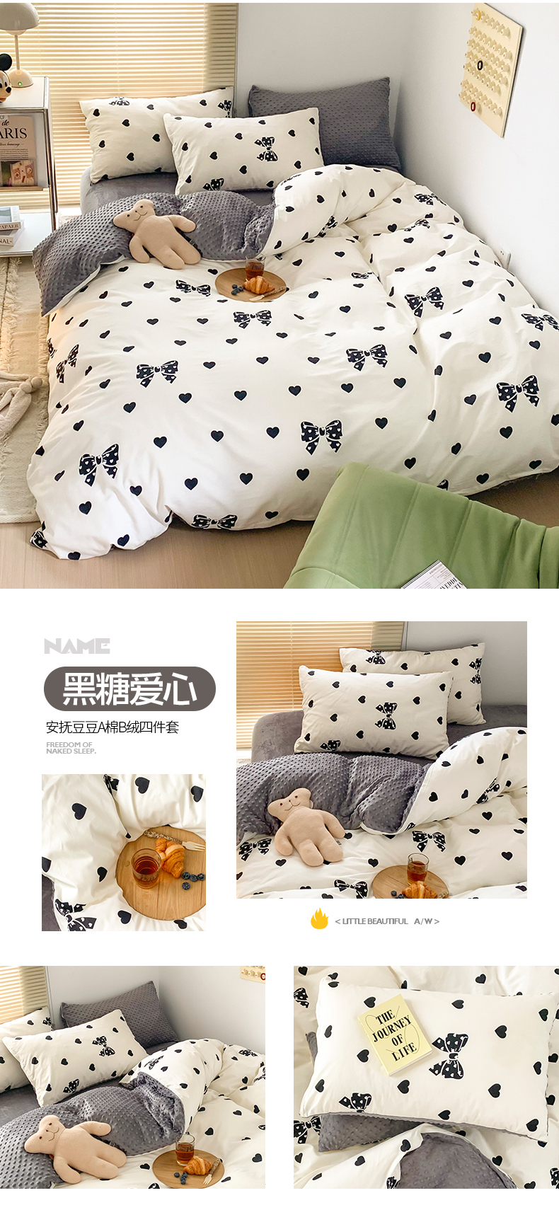 商品名称:金奇达 2023新款豆豆棉绒四件套 黑糖爱心