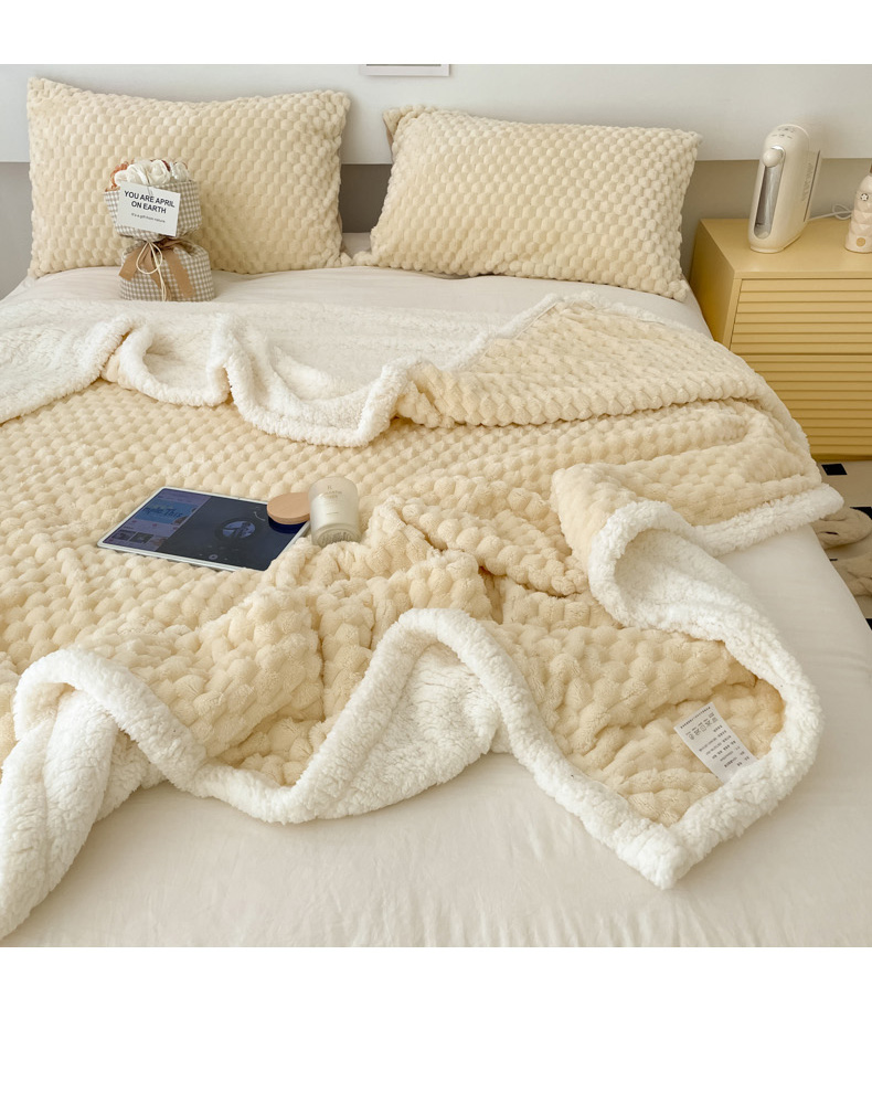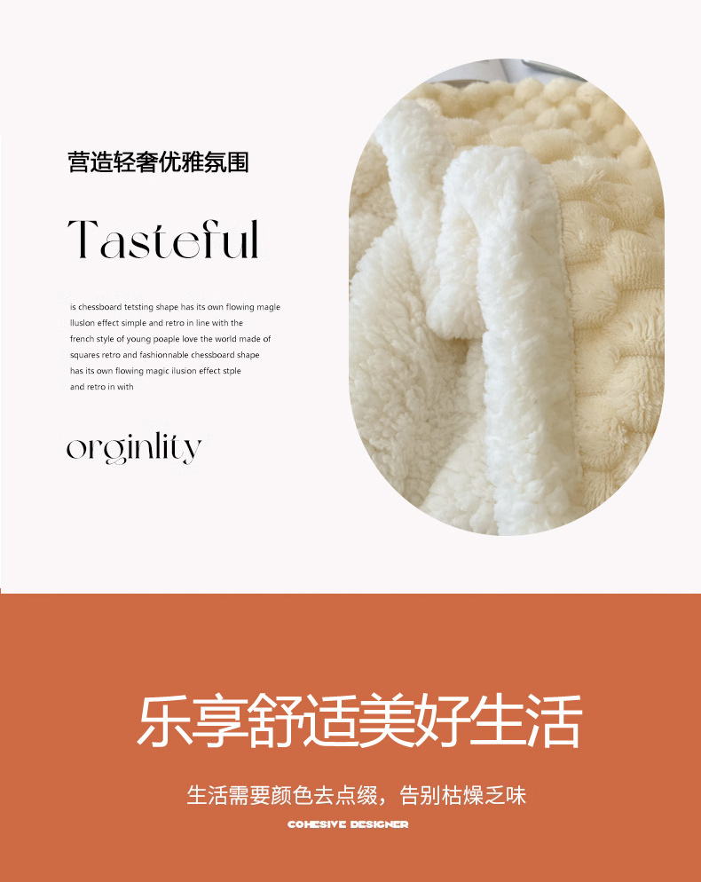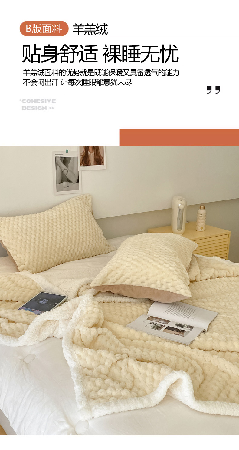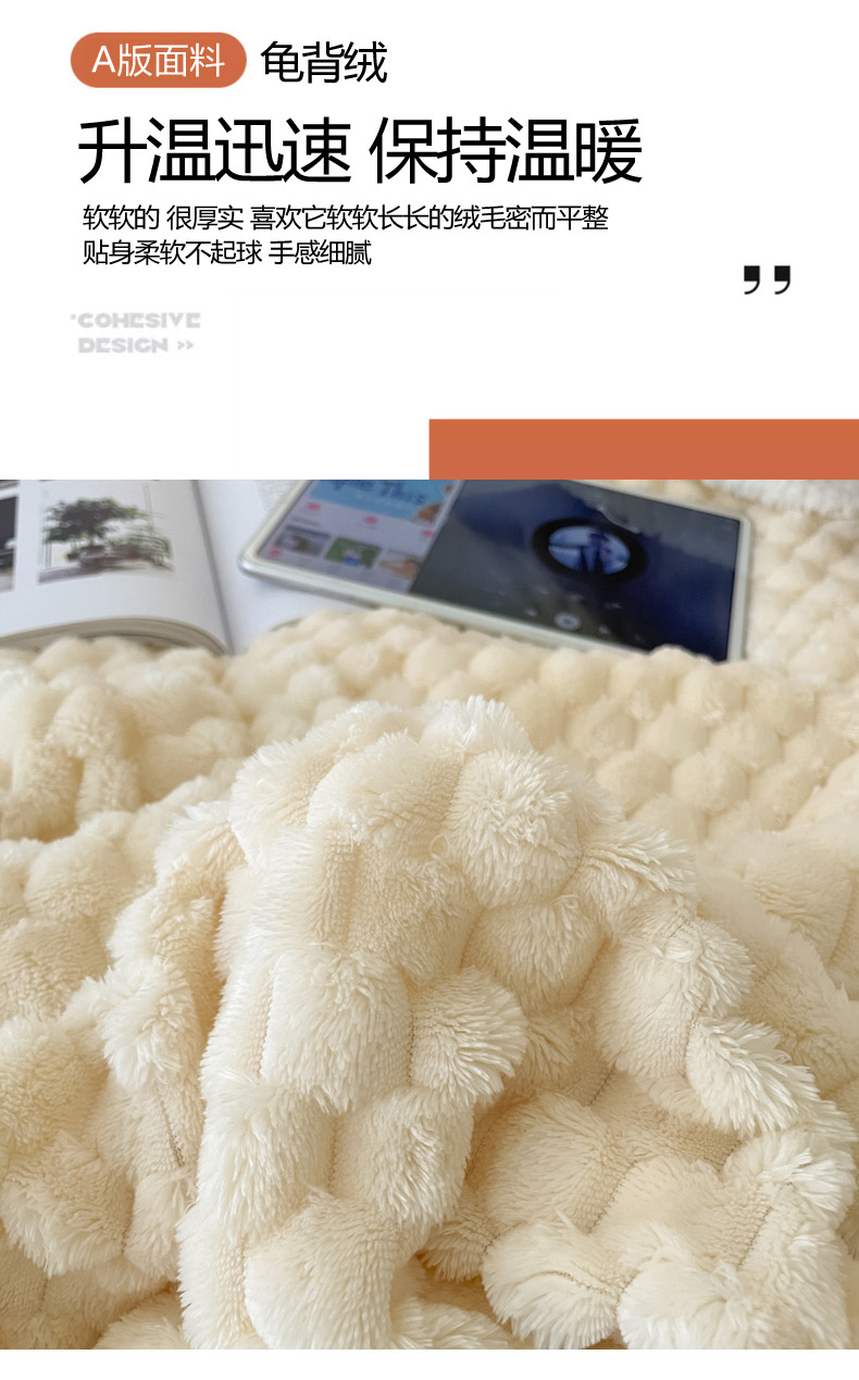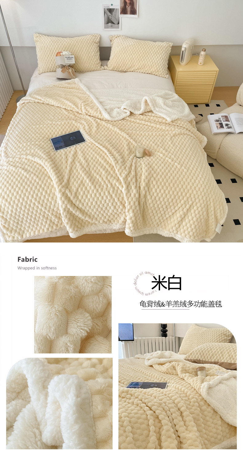 商品名称:沐慕 2023新款纯色简约龟背绒拼羊羔绒毛毯 米白