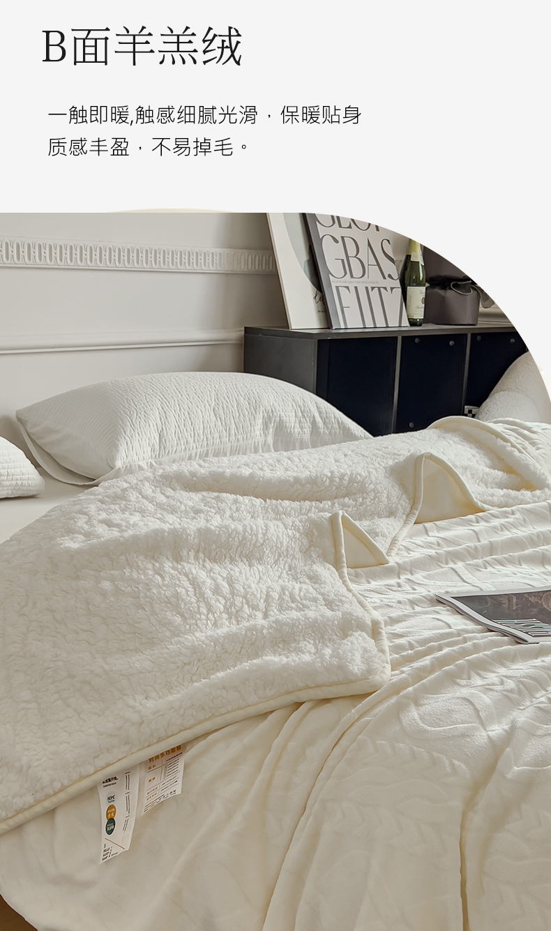 (总)宜家坊 2023新款秋冬高克重法莱绒羊羔绒立体剪花纯色多功能毛毯,奶油白,浅奶咖,绅士灰,胭脂粉,烟灰蓝,优雅棕