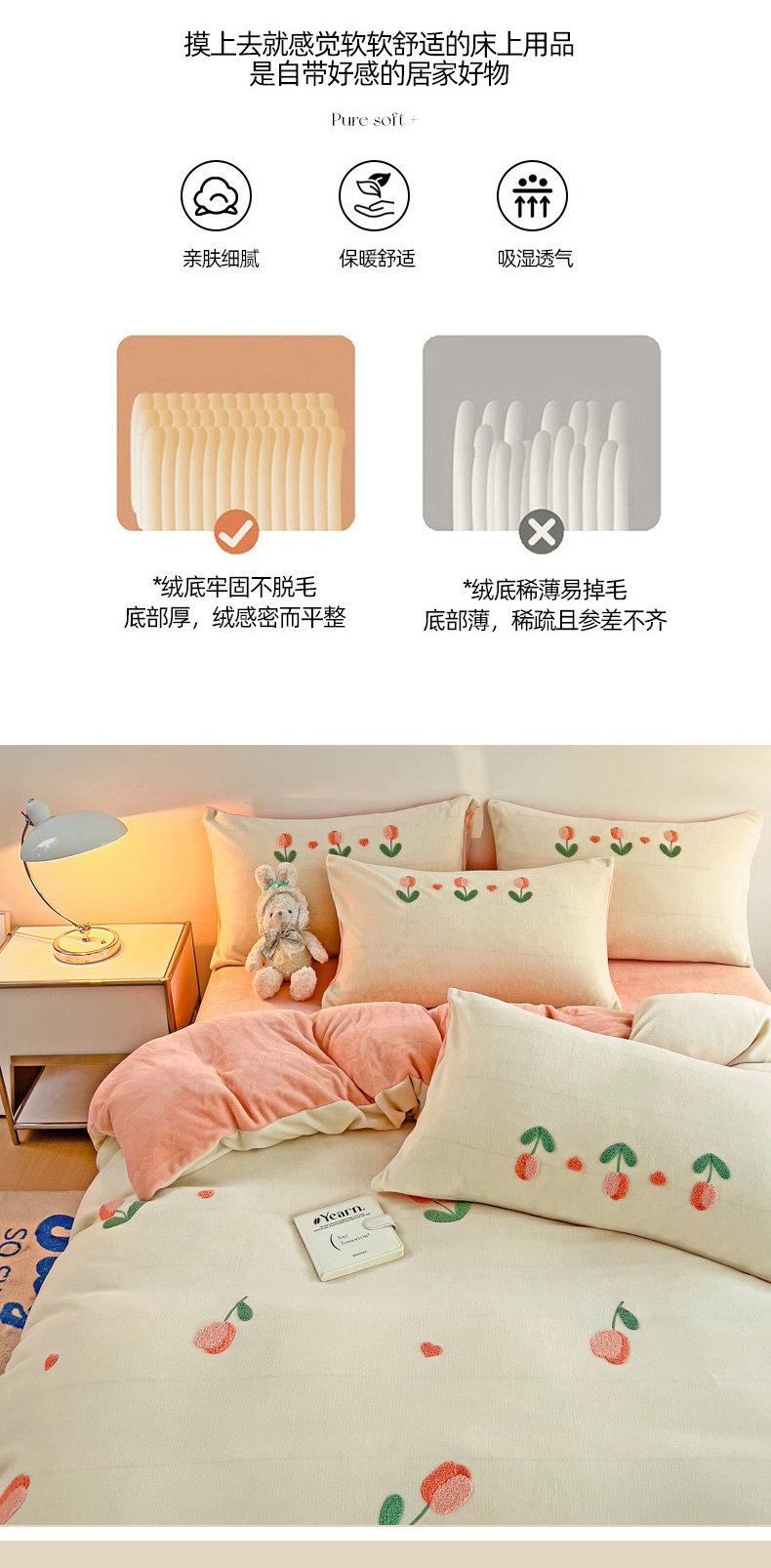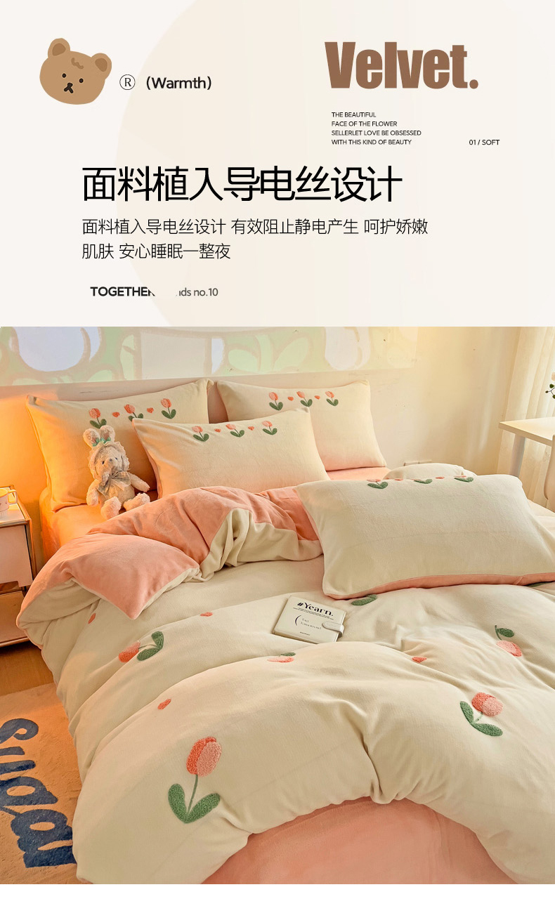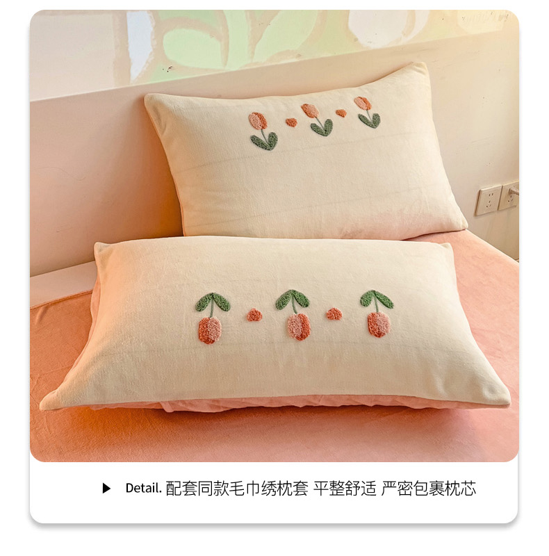 商品名称:寐居家纺 2023毛巾绣牛奶绒四件套 郁金香-粉白