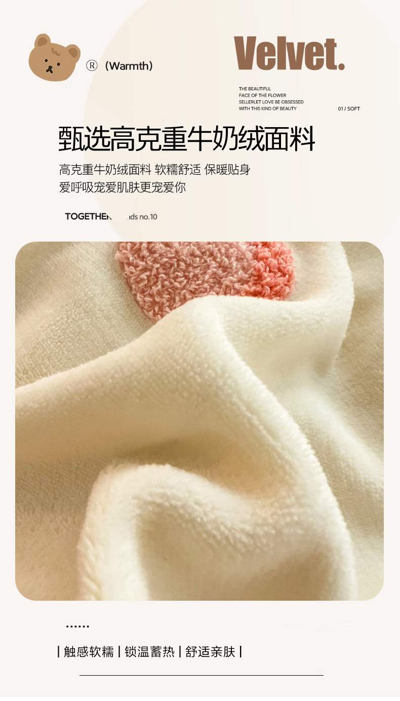 (总)寐居家纺 2025新款A类牛奶绒毛巾绣床盖,组合,格纹萌犬,红果果,萌兔有约,年年有鱼,甜心小骑,星伴小象