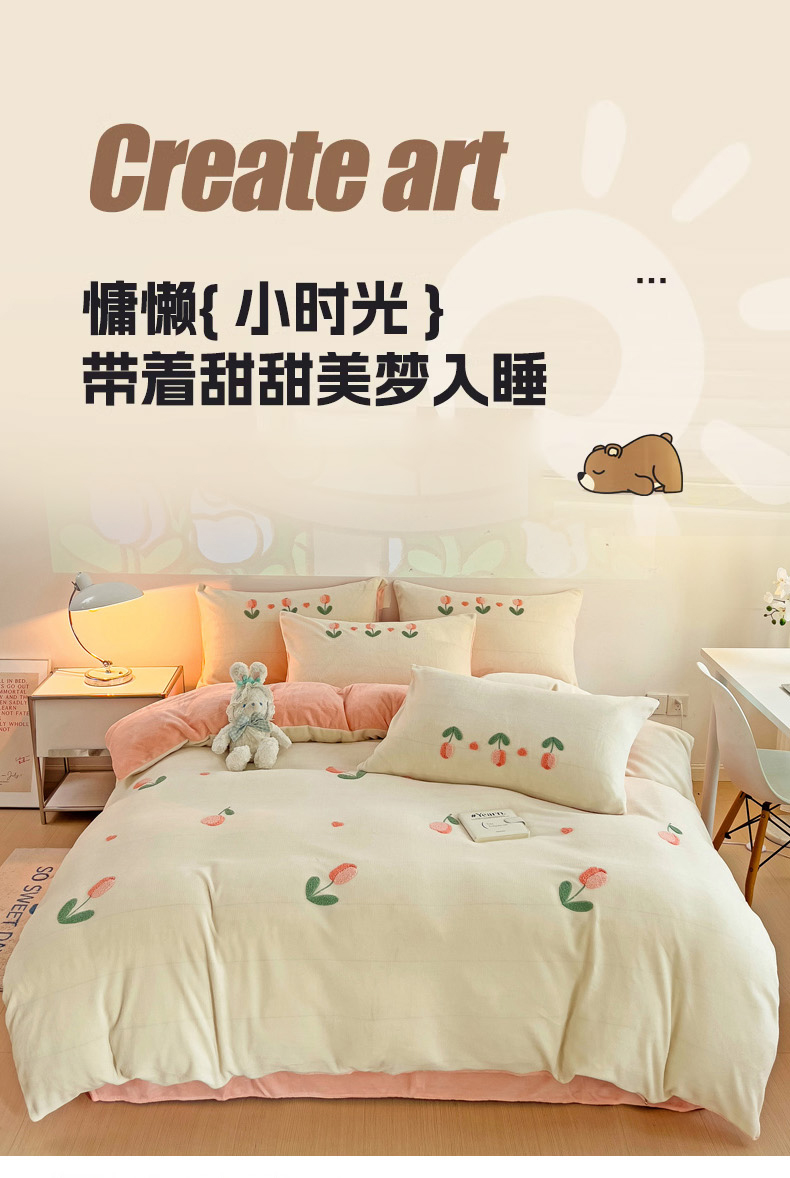 (总)寐居家纺 2025新款贴布绣高克重牛奶绒四件套,安吉拉喵,查理狗,粉糯kitty,皮皮布布