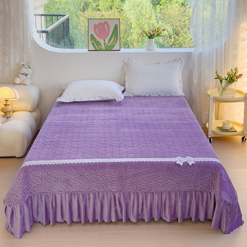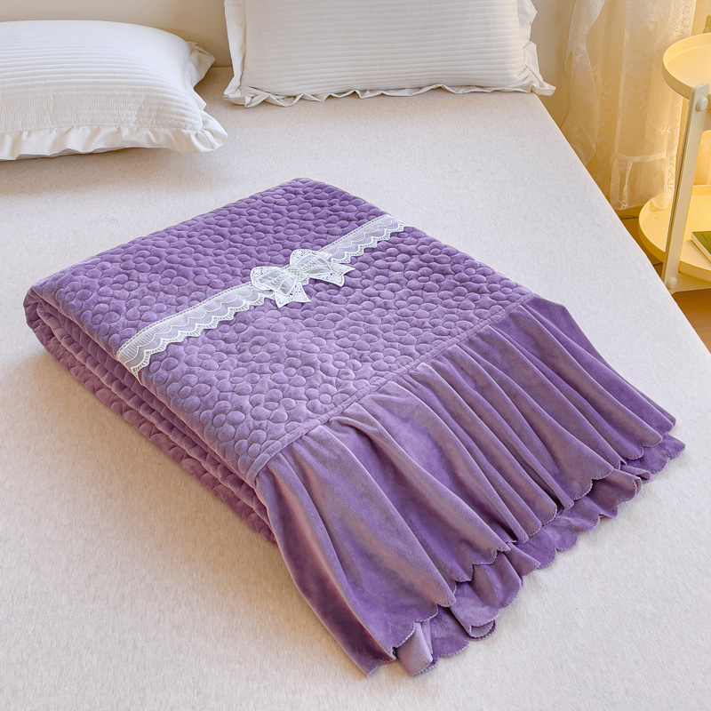 2023直播爆款纯色牛奶绒床盖床裙款蕾丝边素色婴儿绒床盖 蝴蝶结-葡萄紫