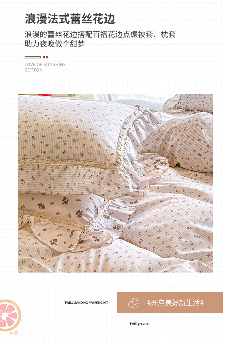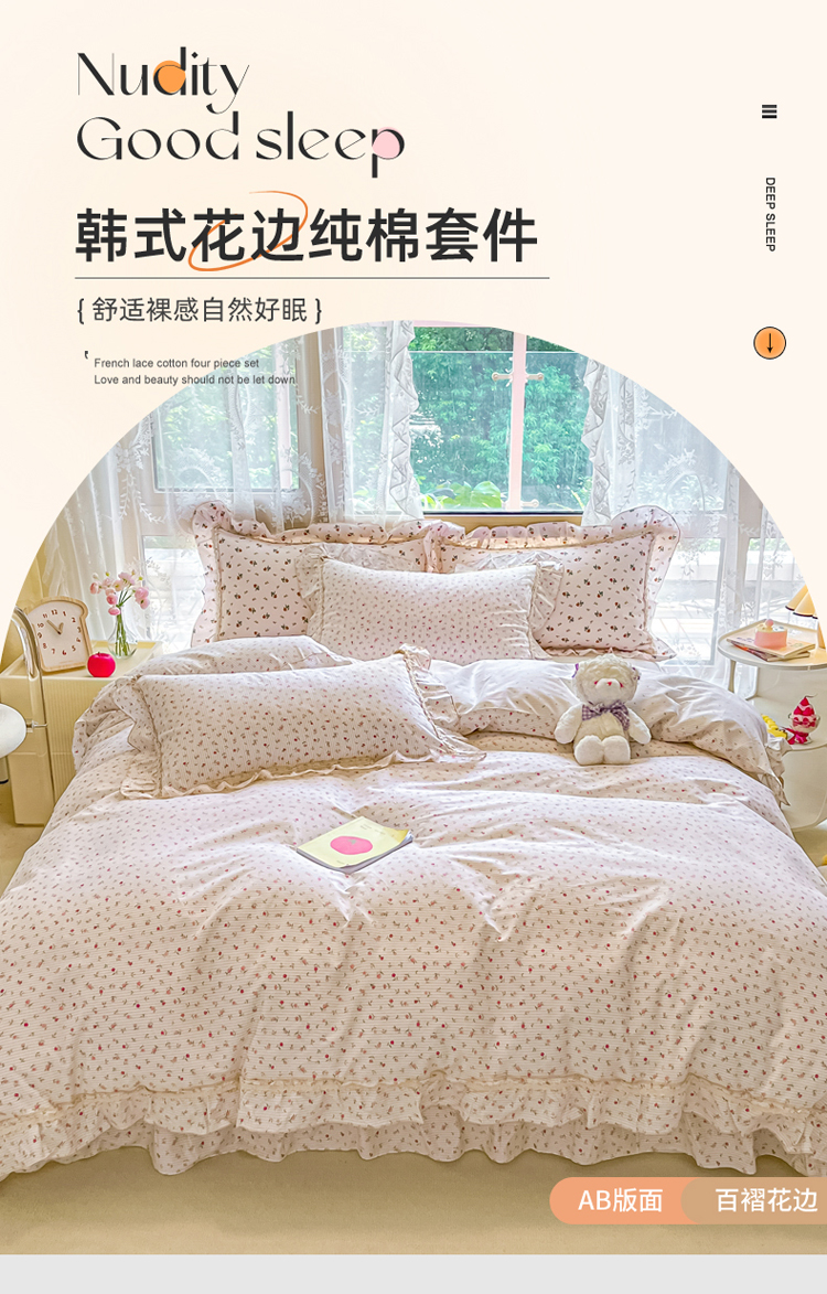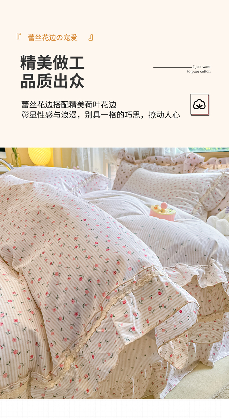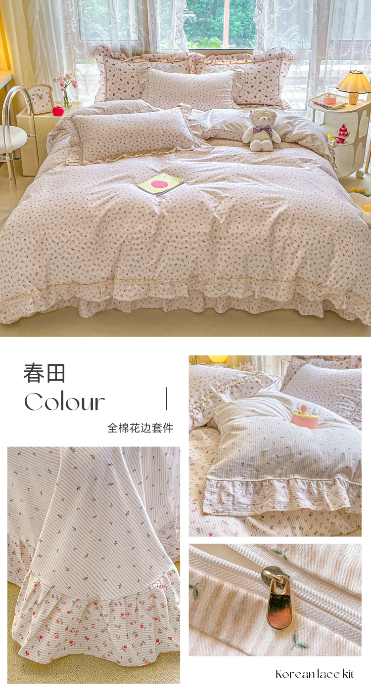 艾唯希家纺 2024新款全棉韩式花边四件套纯棉公主风田园系列 春田