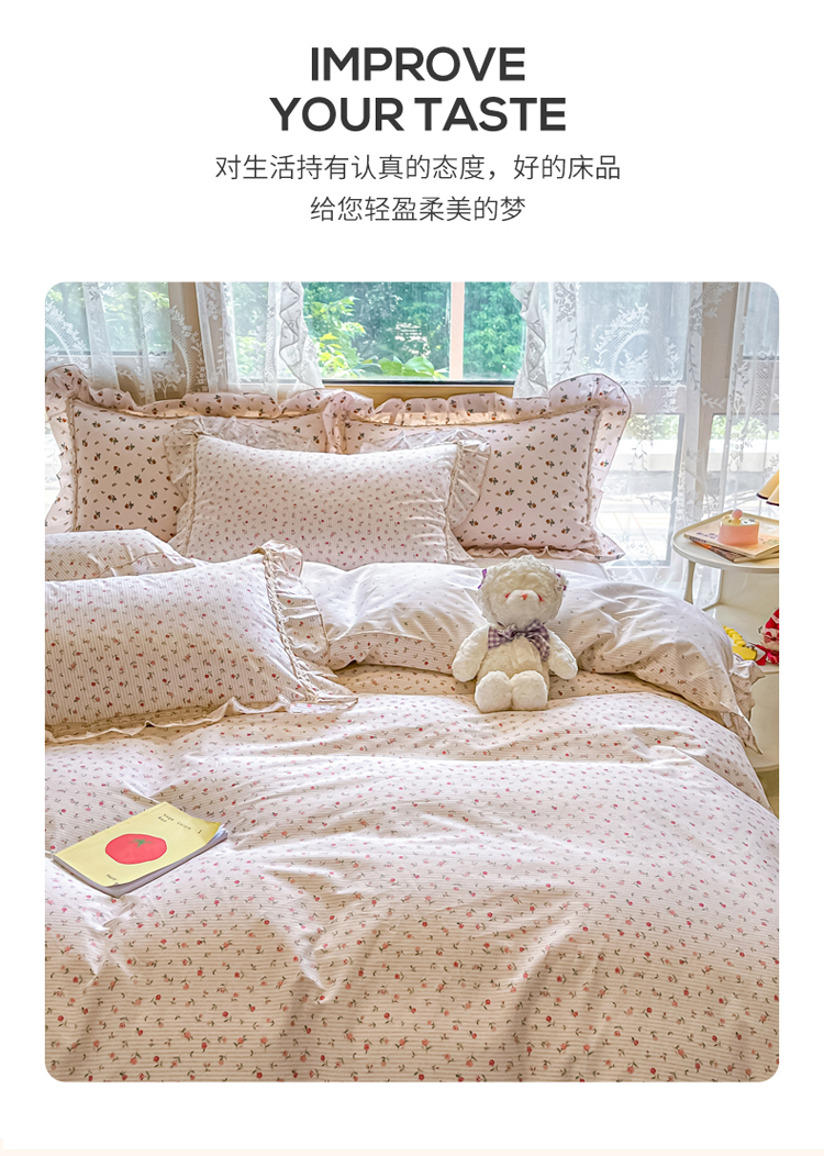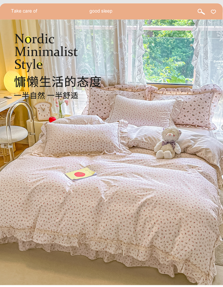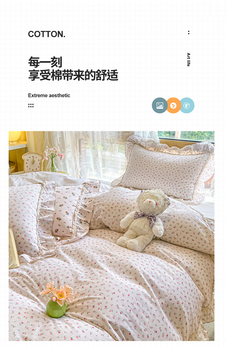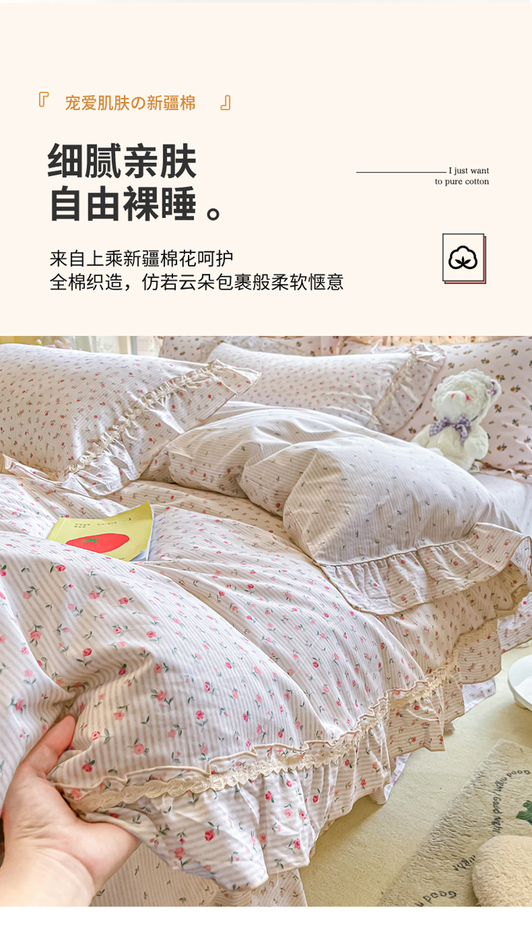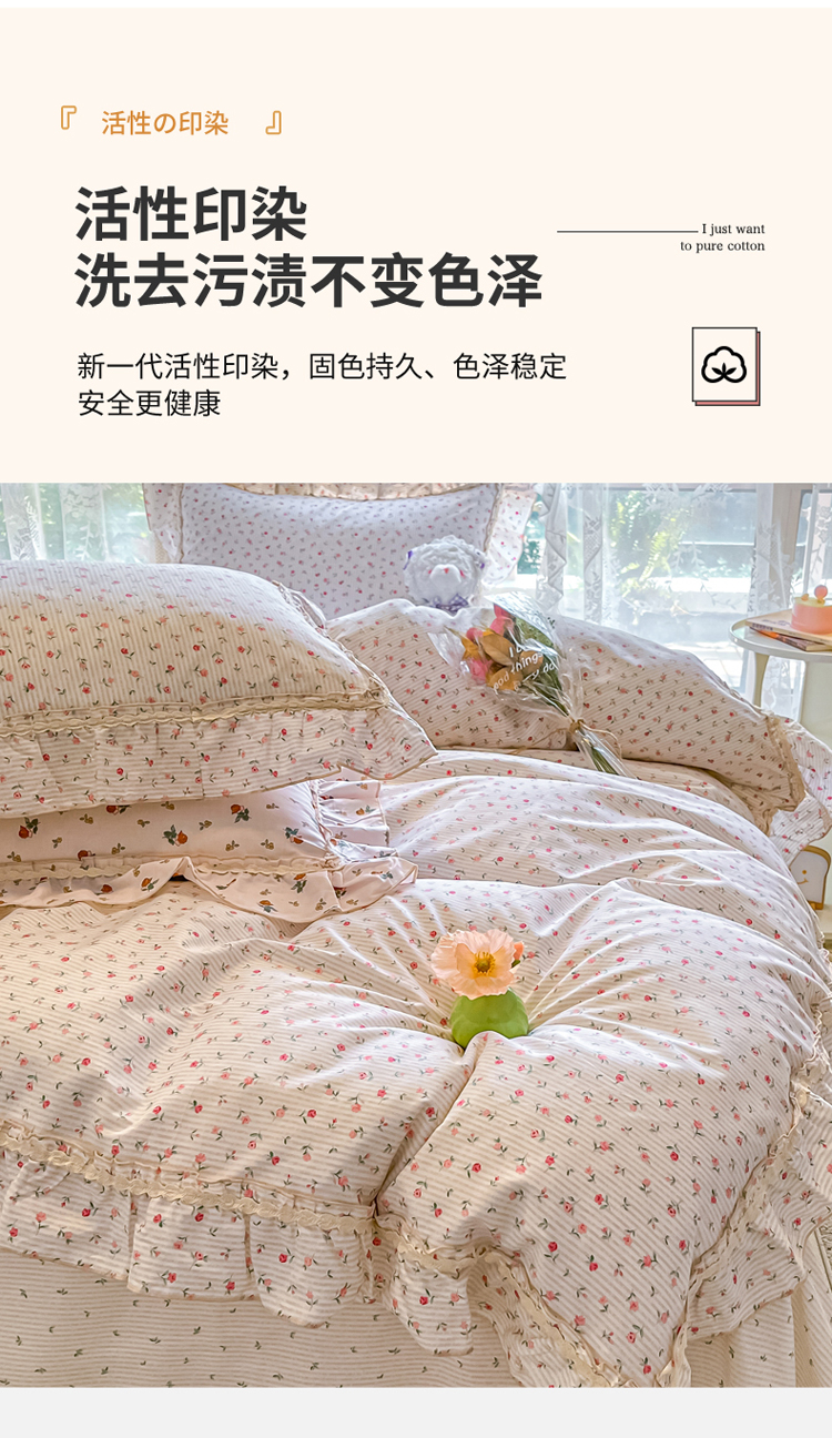 艾唯希家纺 2024新款全棉韩式花边四件套纯棉公主风田园系列 春田